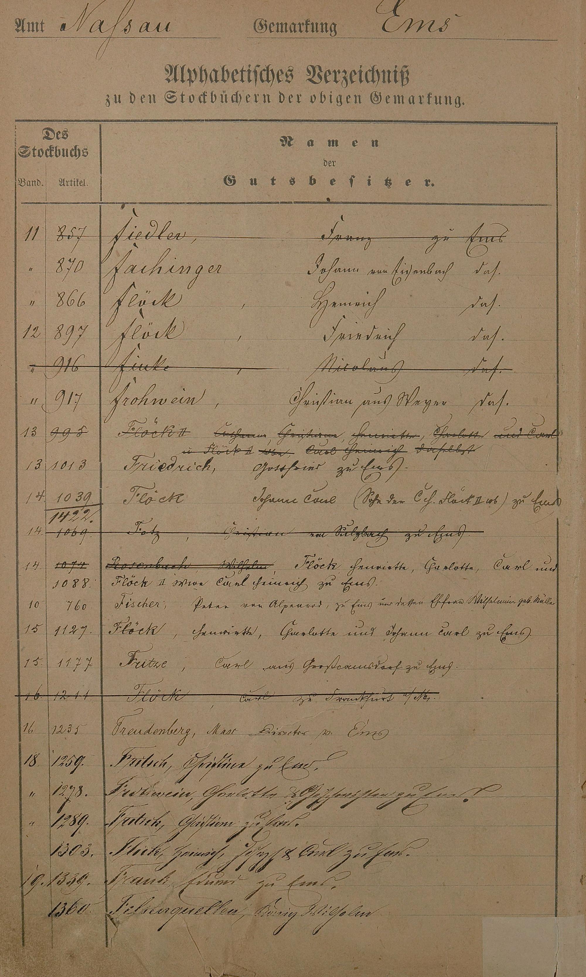 167: Register zum Stockbuch