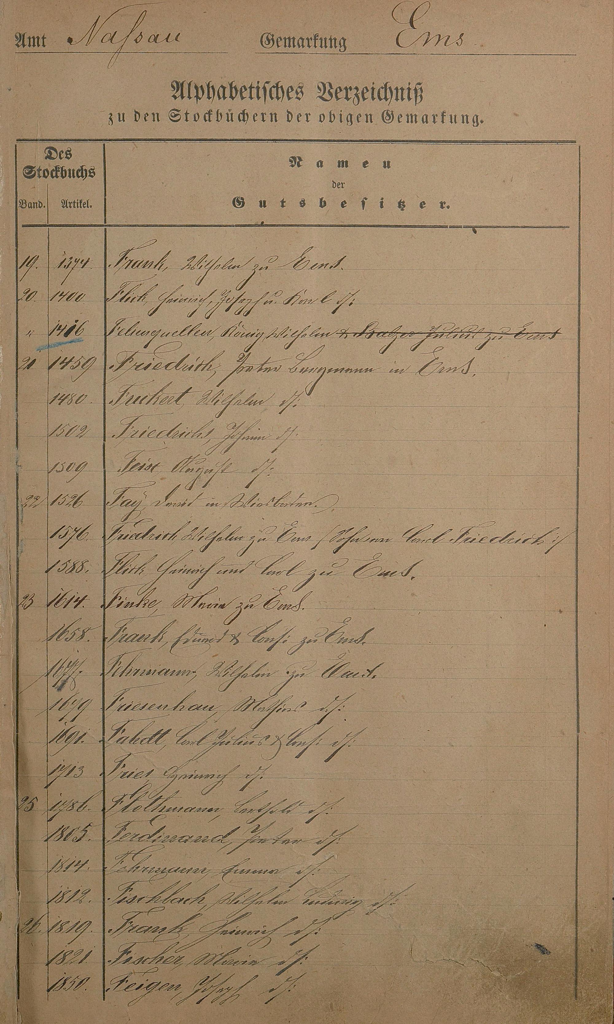 167: Register zum Stockbuch