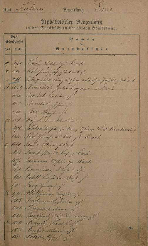 Register zum Stockbuch