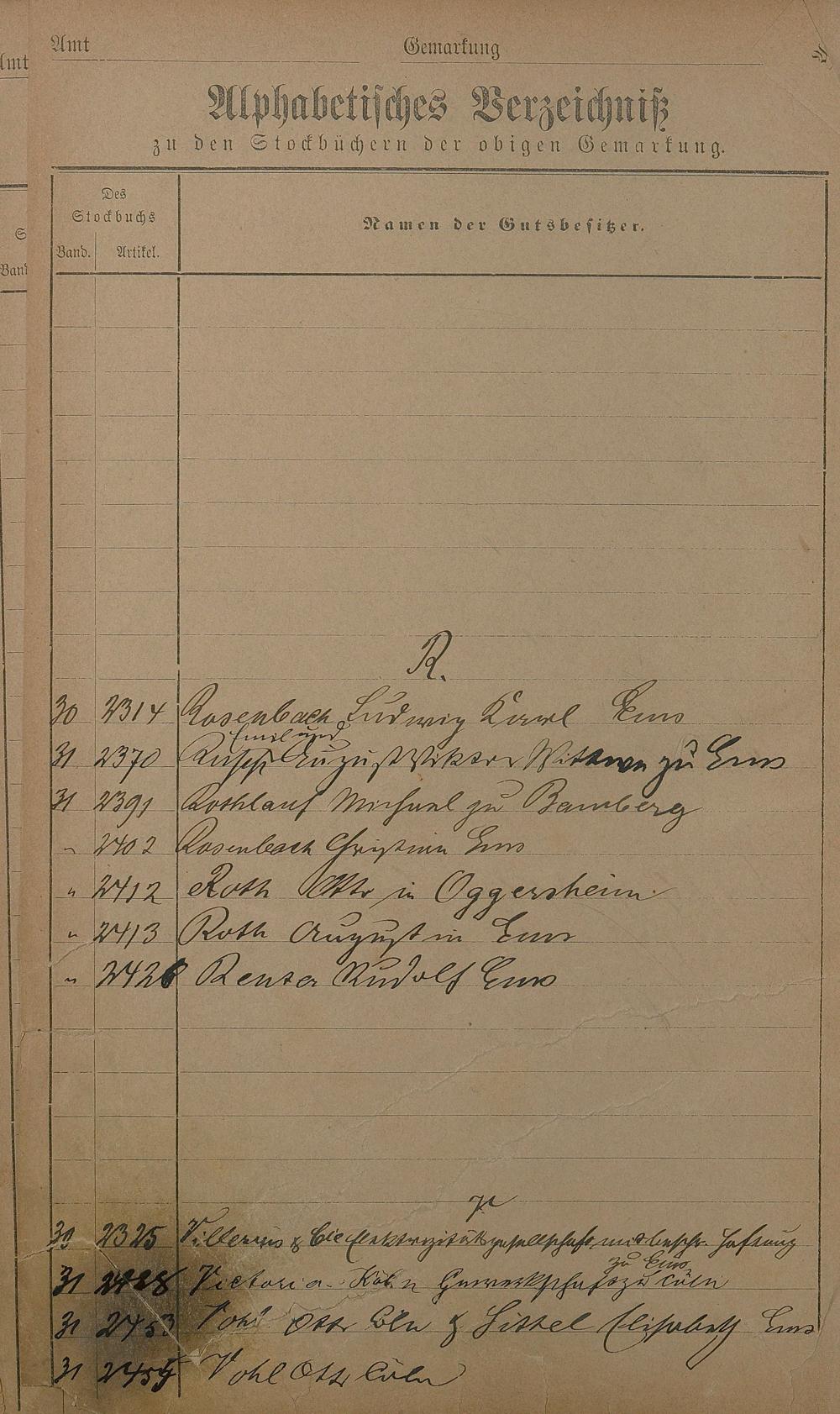 Register zum Stockbuch