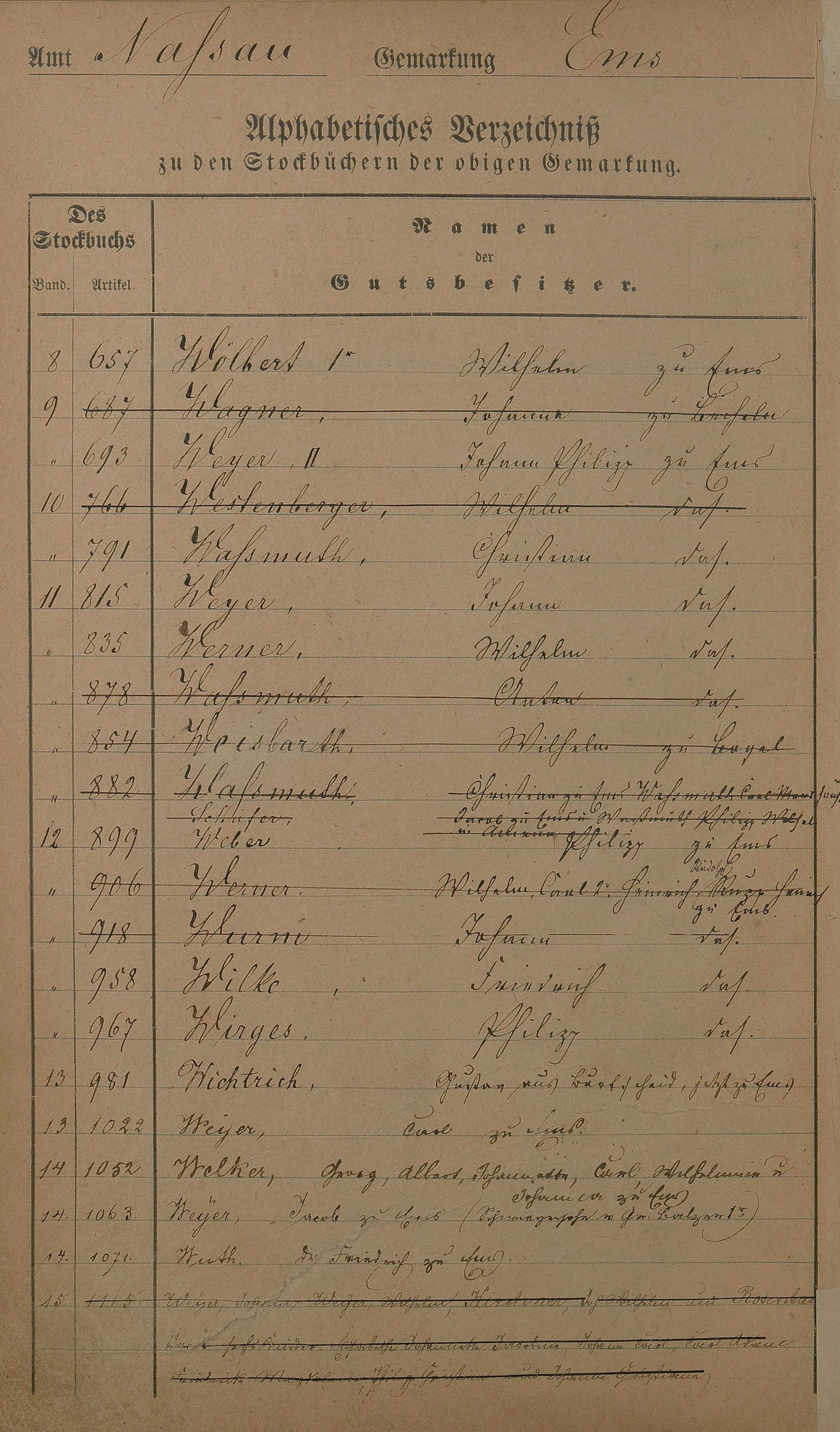 167: Register zum Stockbuch