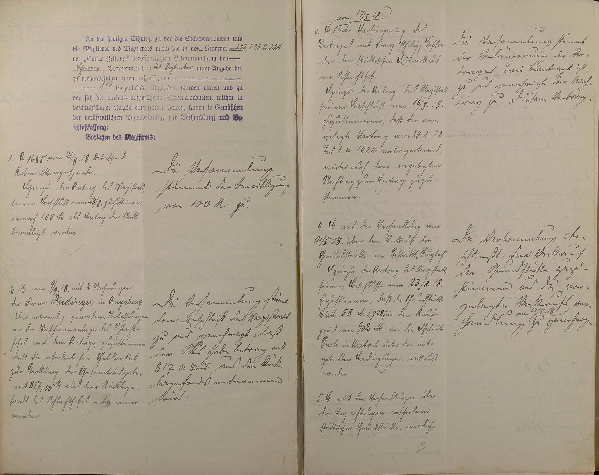 Stadtratsprotokolle 2. Mai 1918 - 23. Okt. 1919