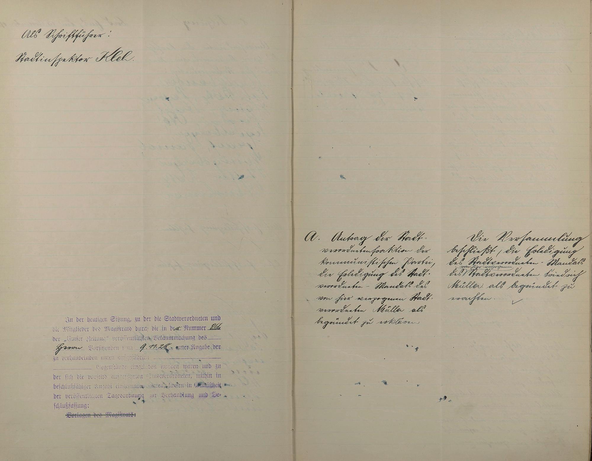Stadtratsprotokolle 14. Okt. 1926 - 5. März 1931