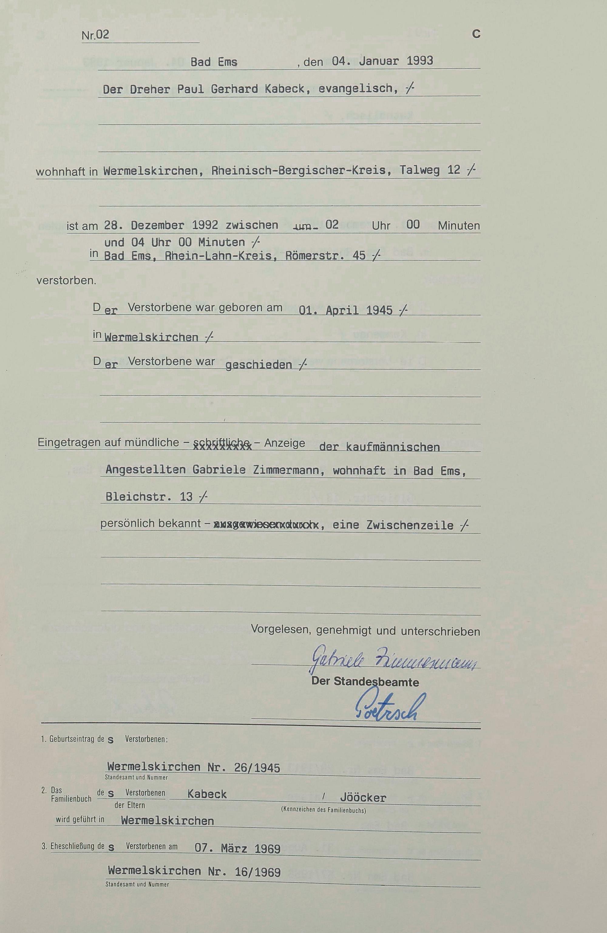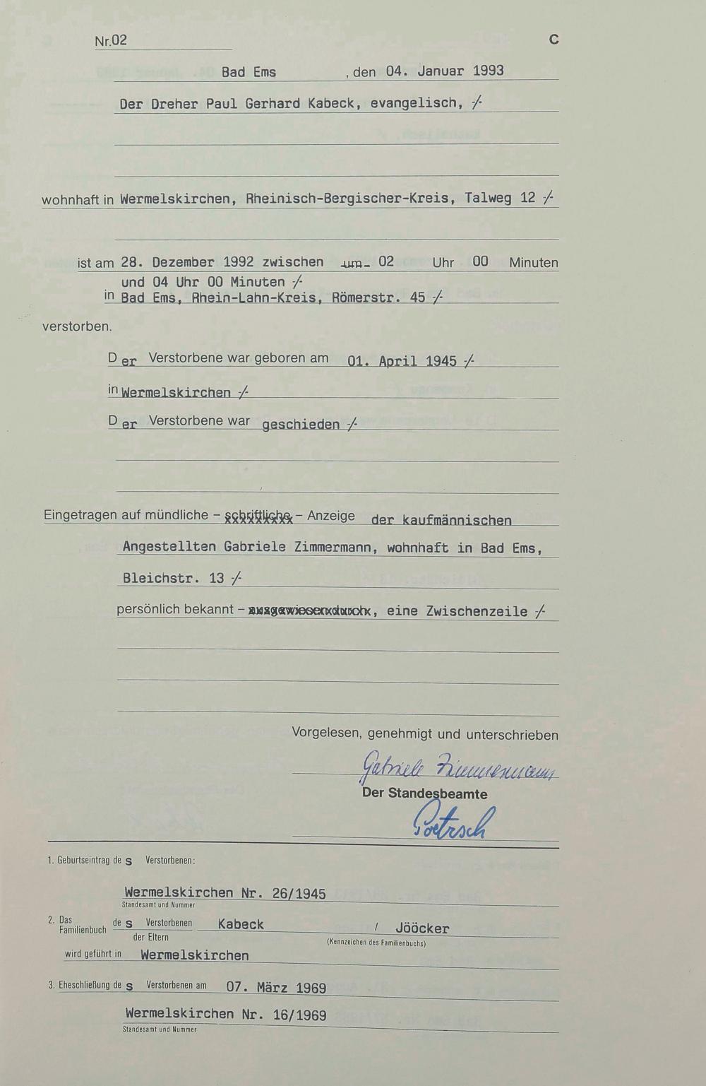 Sterberegister 1993