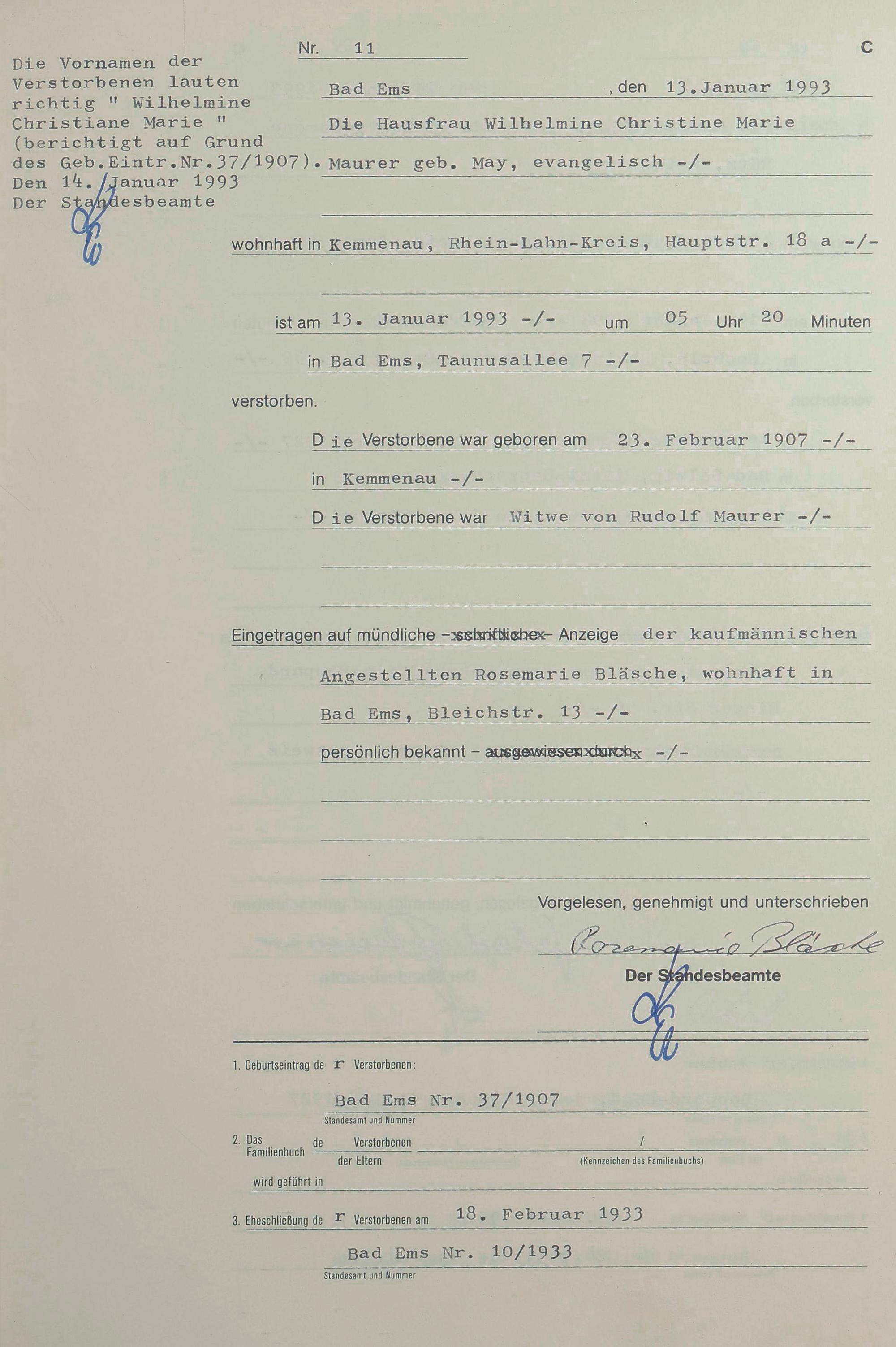 Sterberegister 1993
