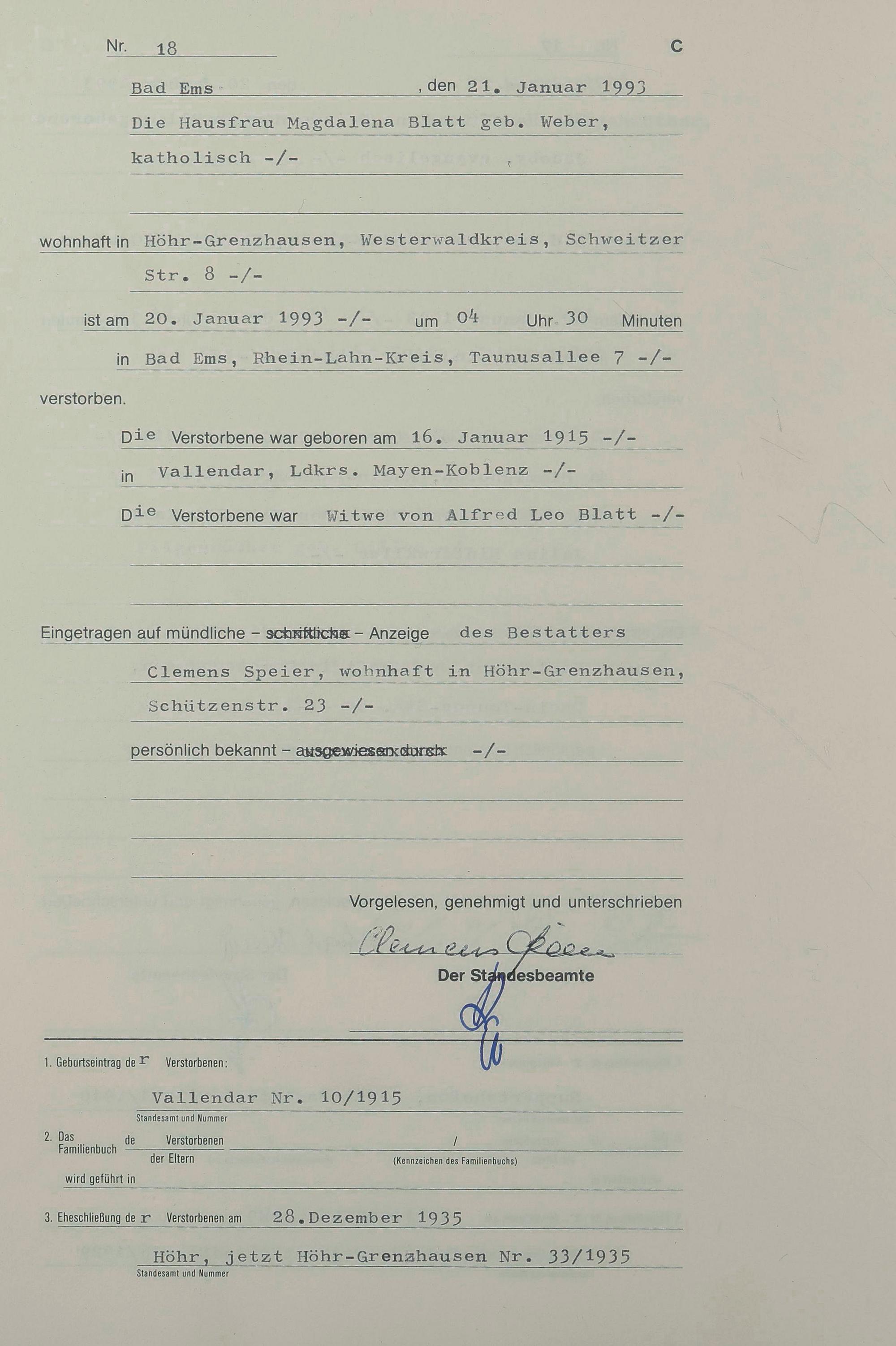 Sterberegister 1993