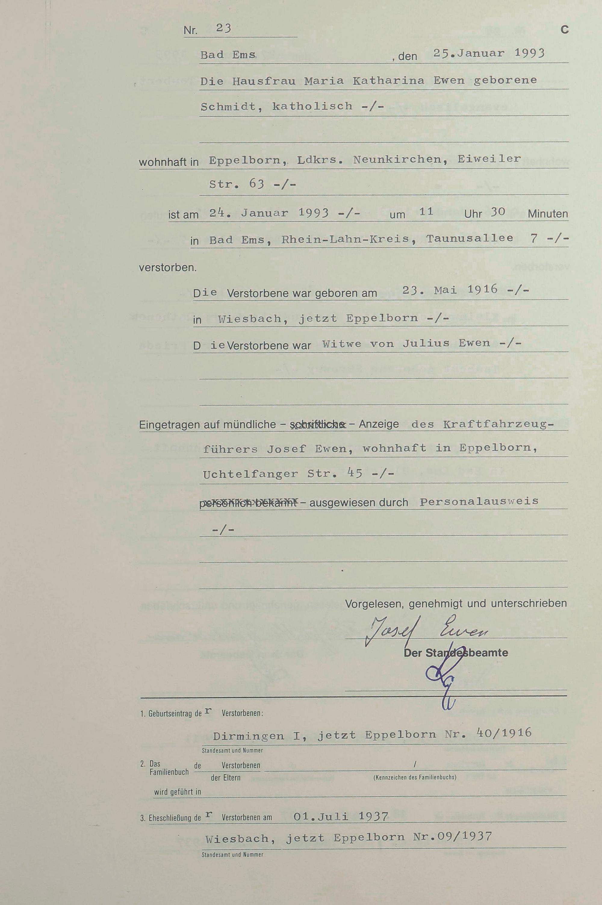 Sterberegister 1993