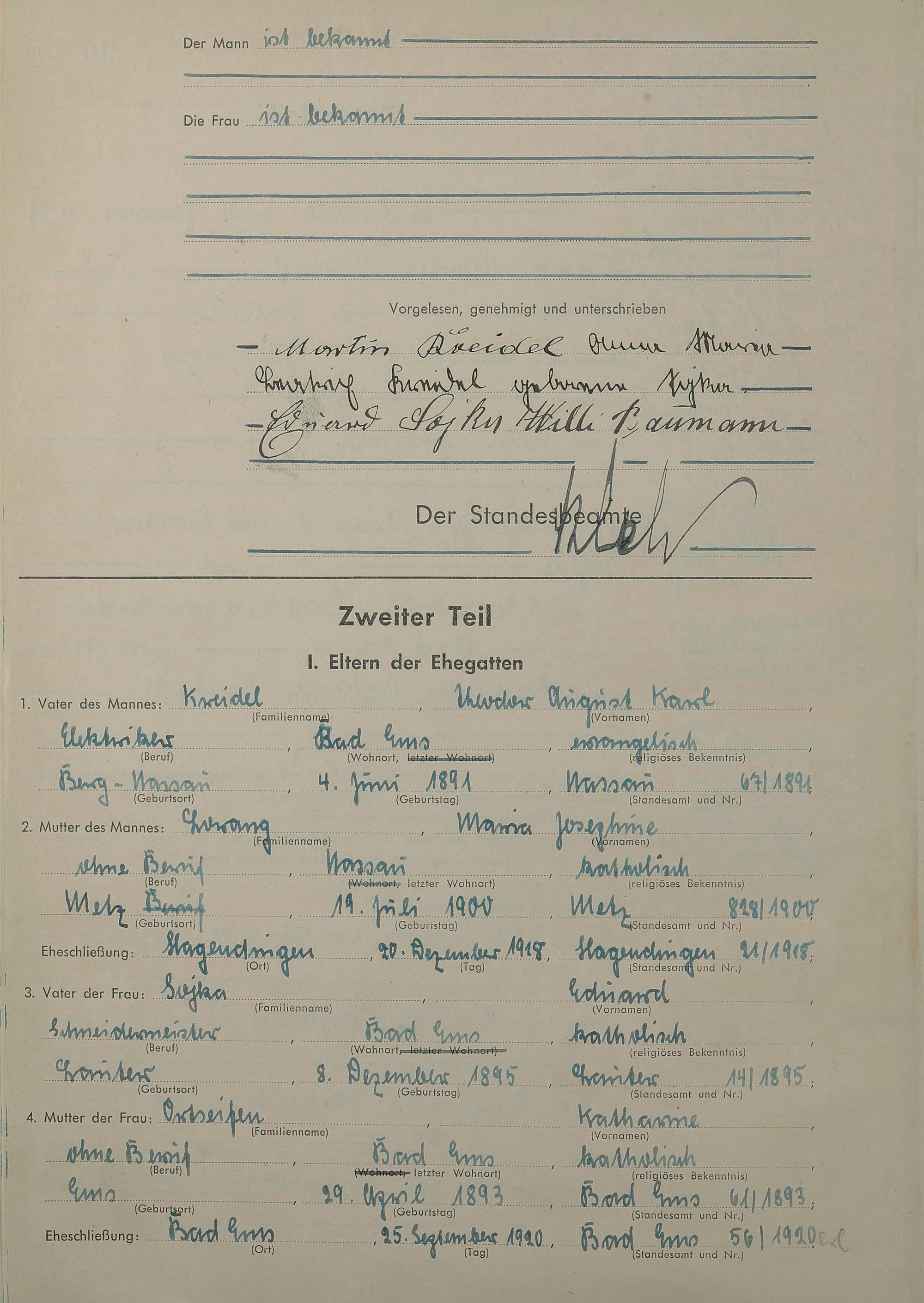 Heiratsregister 1943
