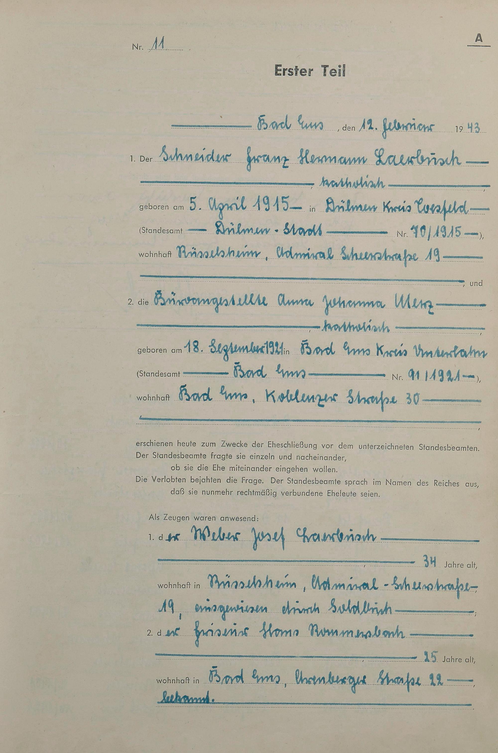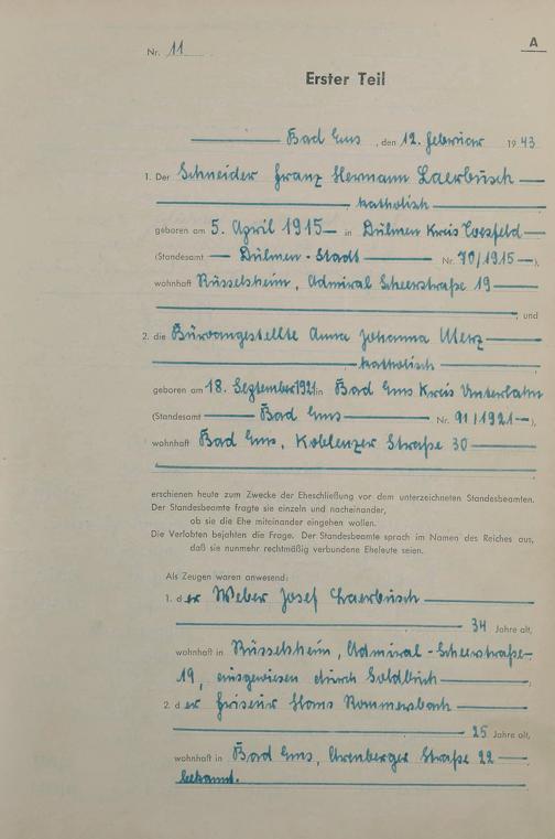 Heiratsregister 1943