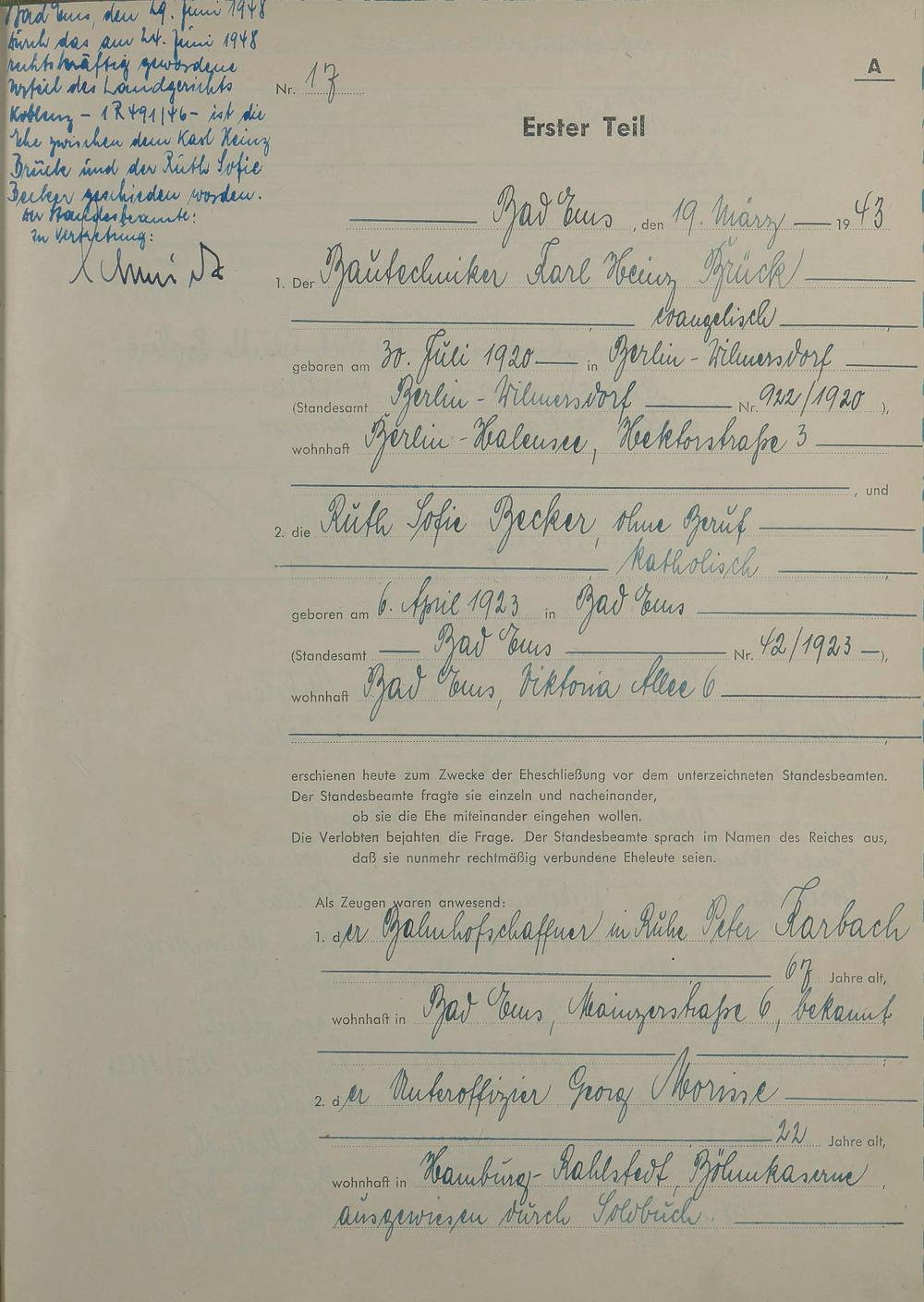Heiratsregister 1943