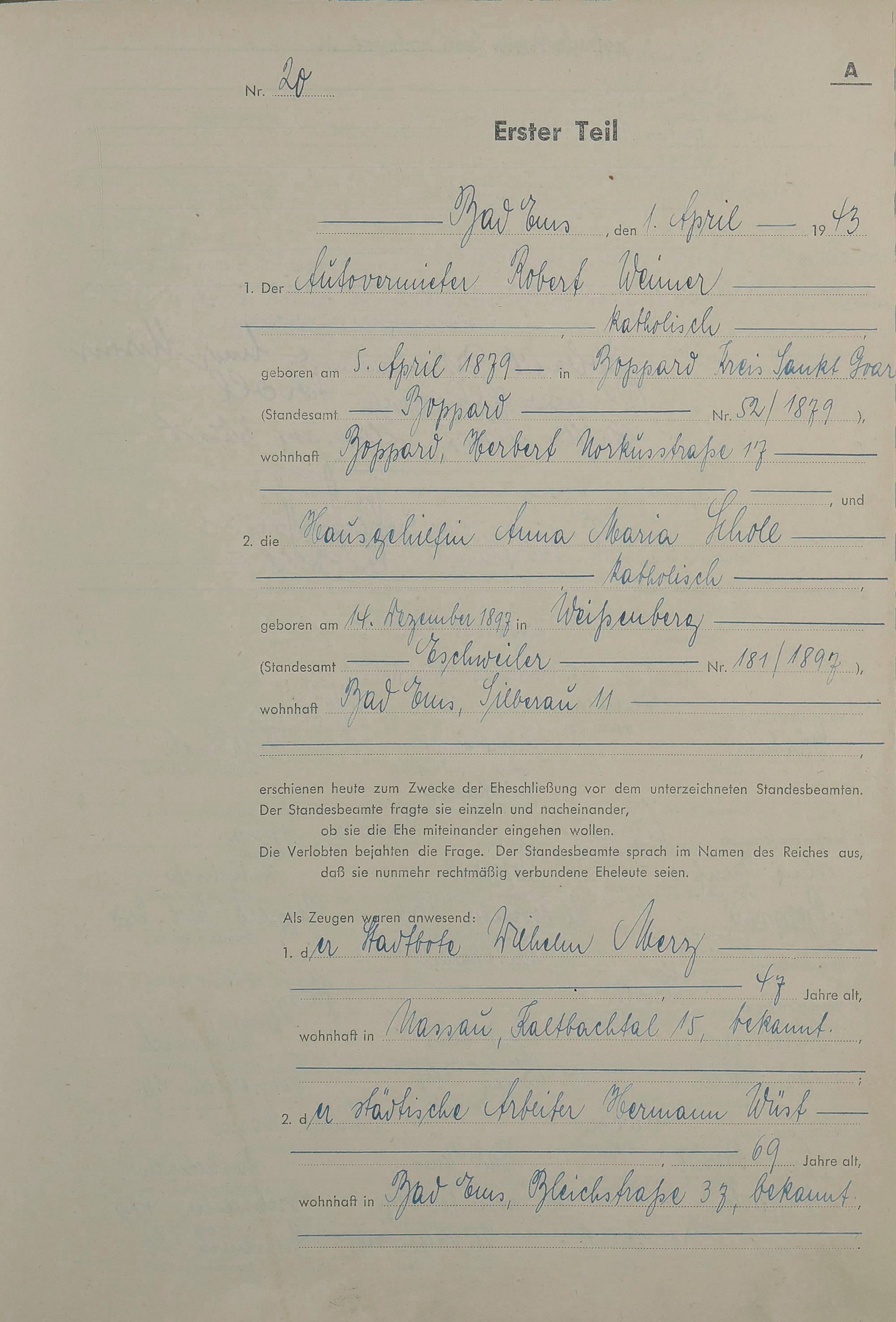 Heiratsregister 1943