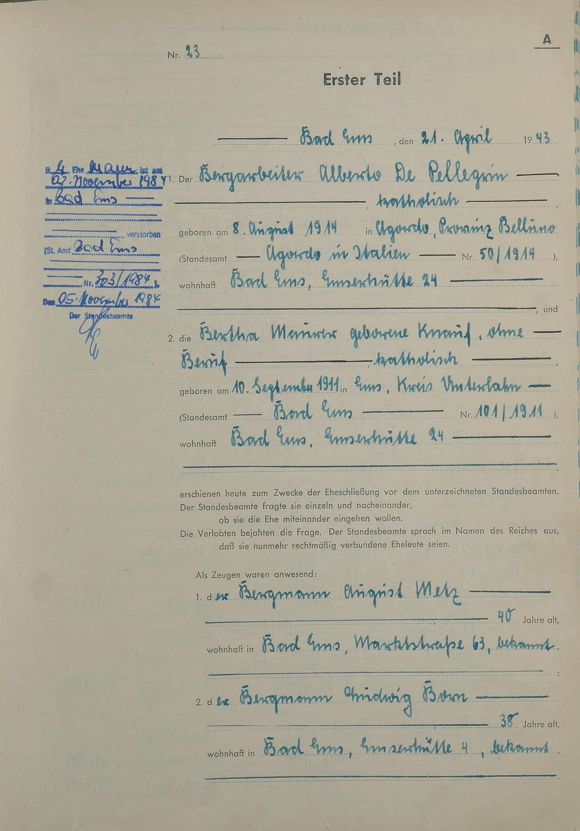 Heiratsregister 1943