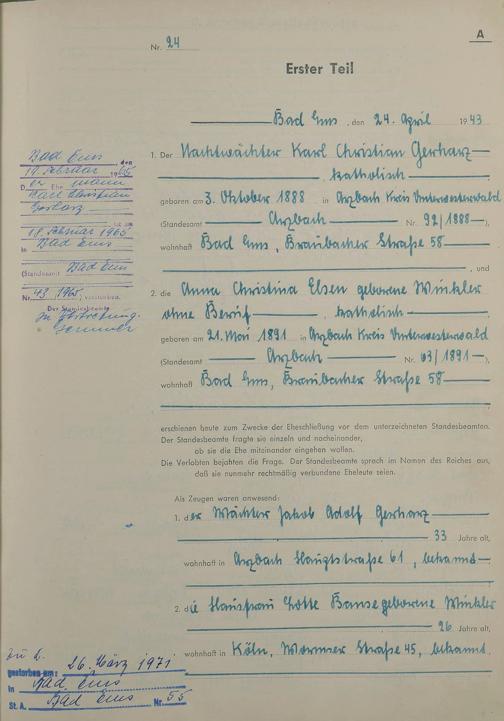 Heiratsregister 1943