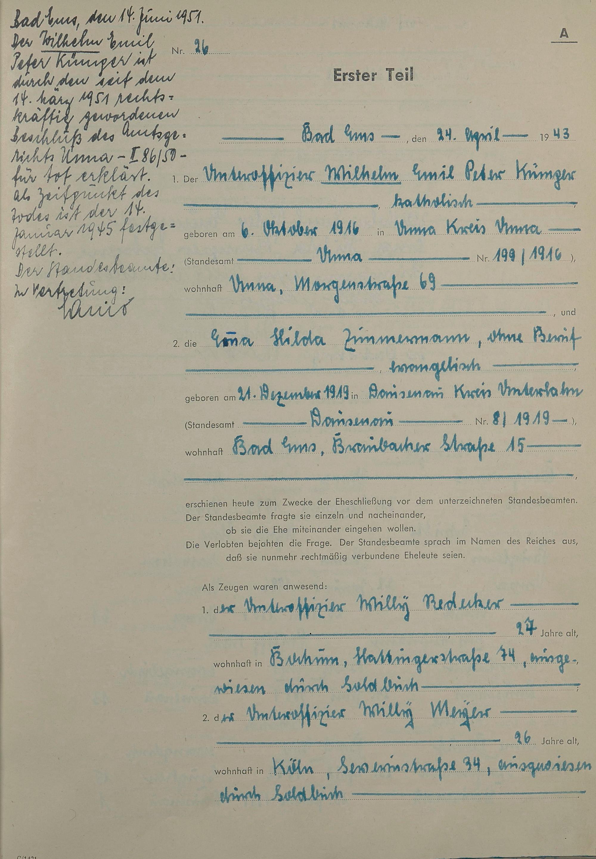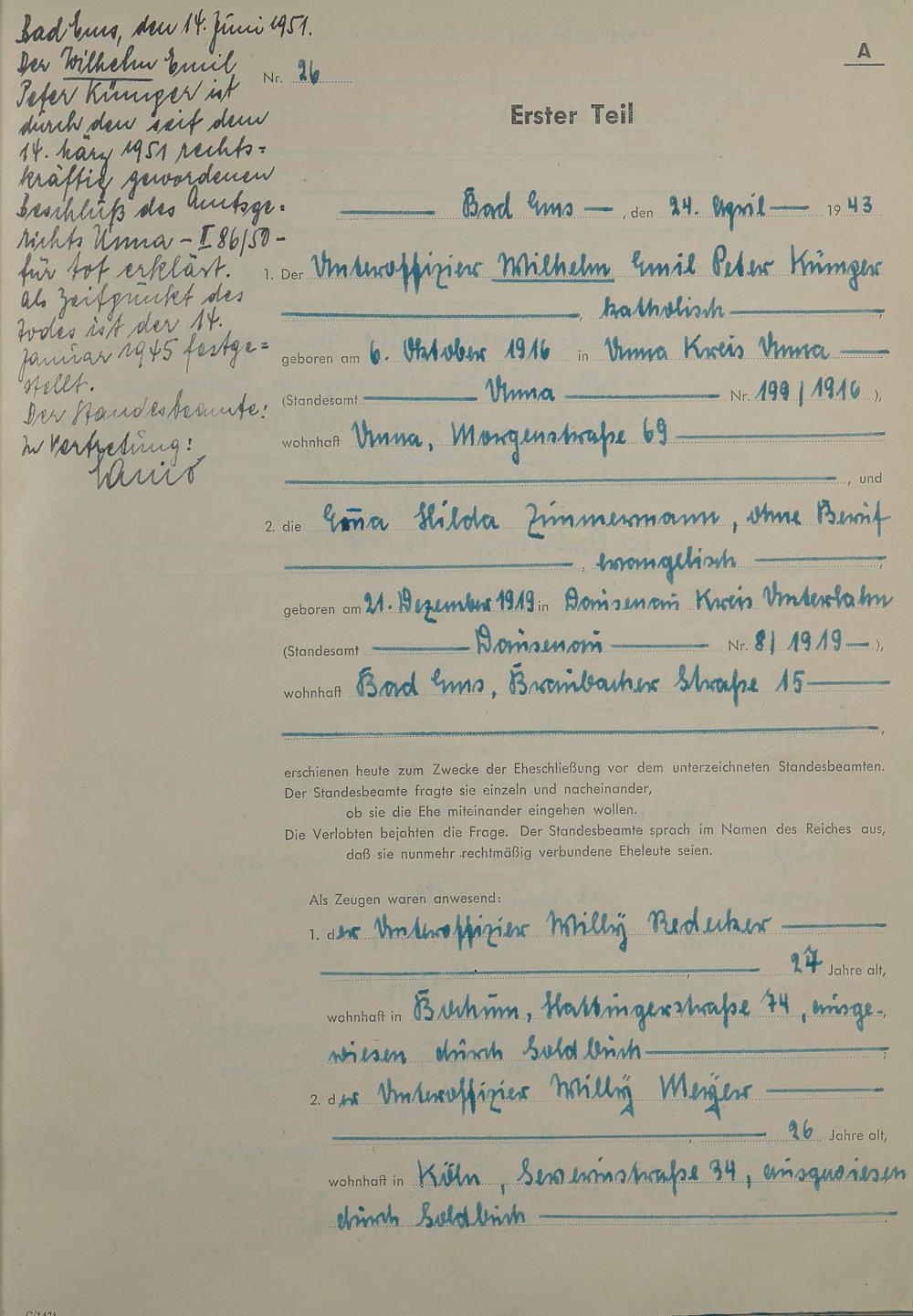 Heiratsregister 1943