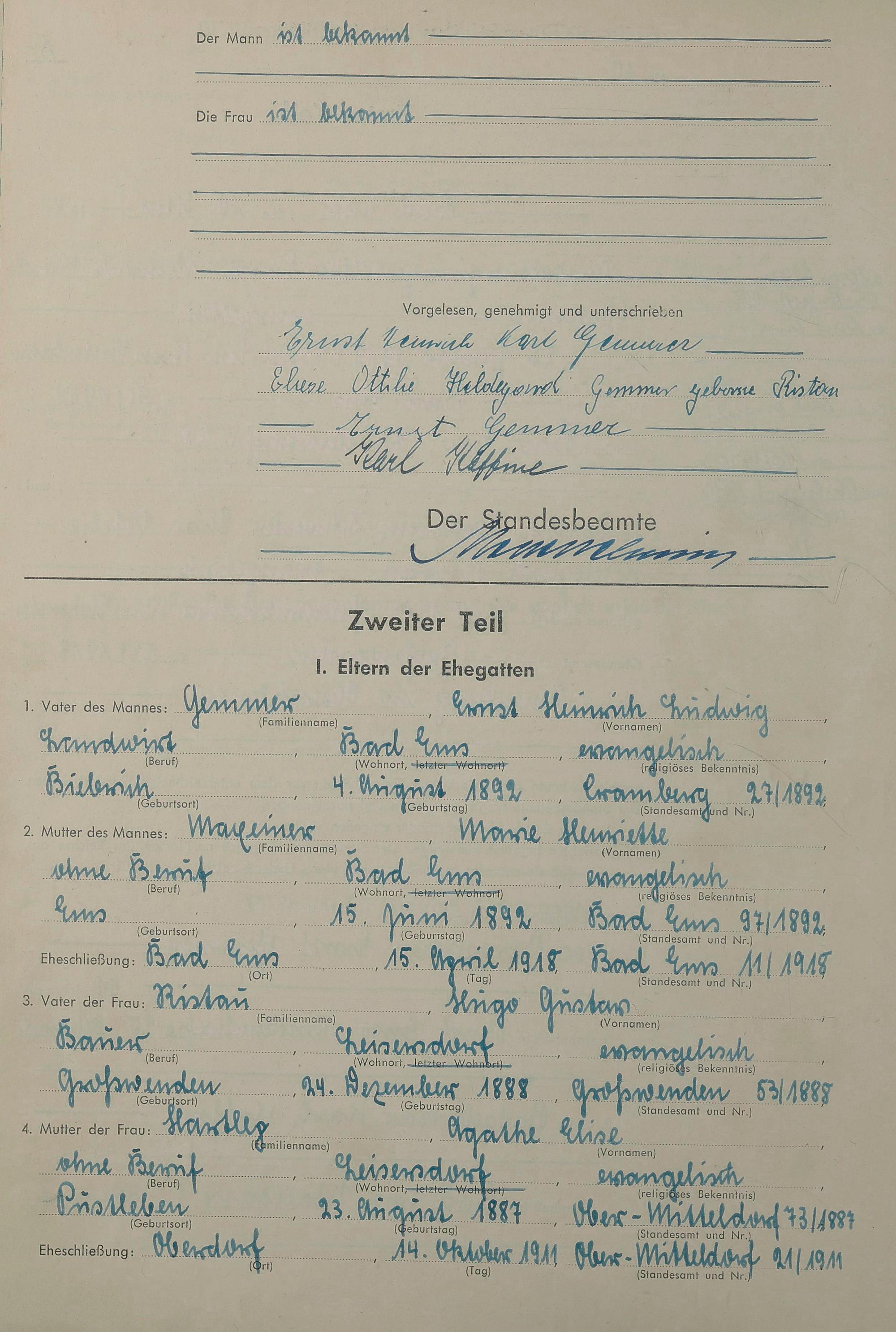 Heiratsregister 1943