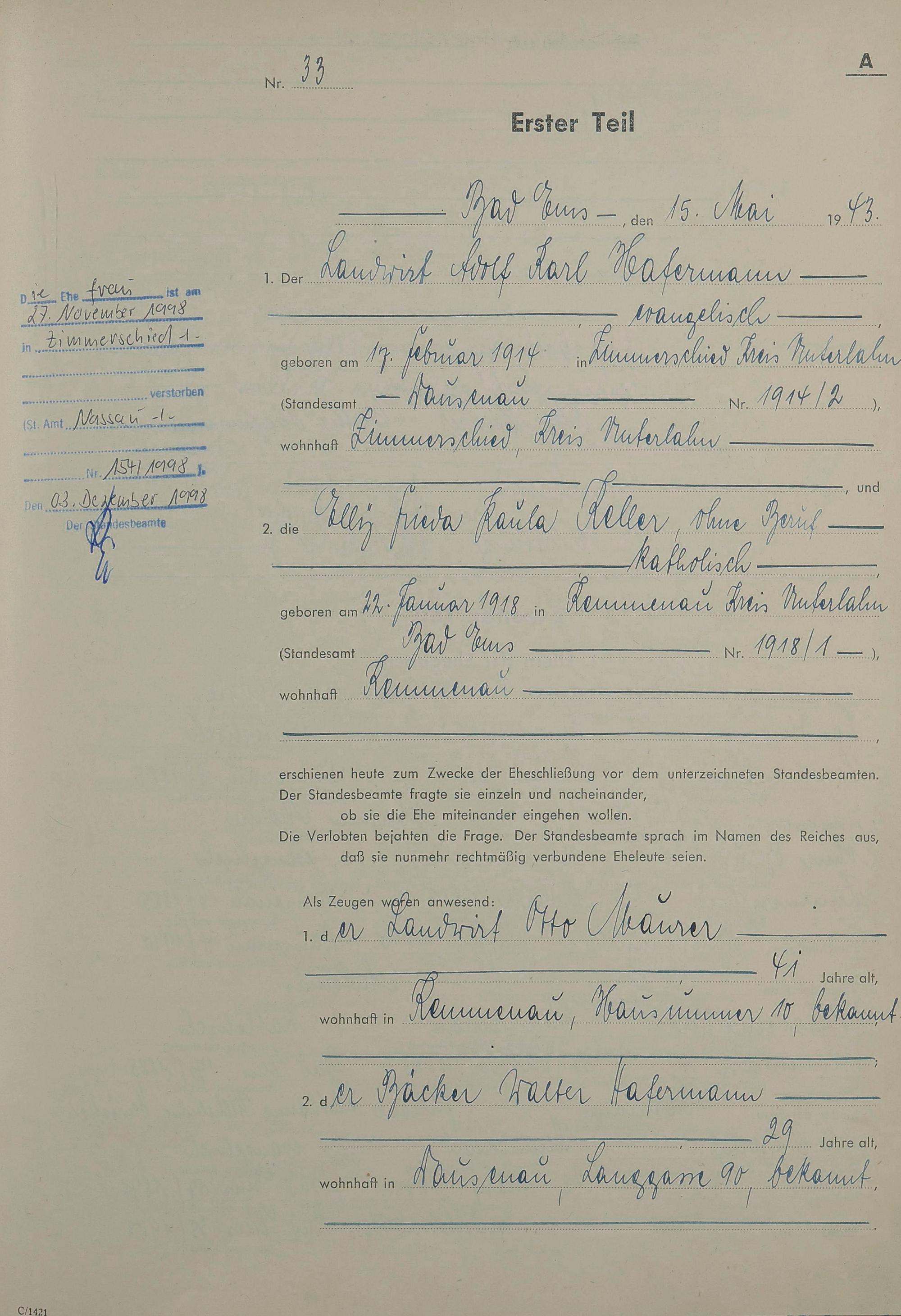 1419: Heiratsregister 1943