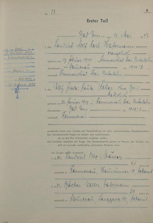 Heiratsregister 1943