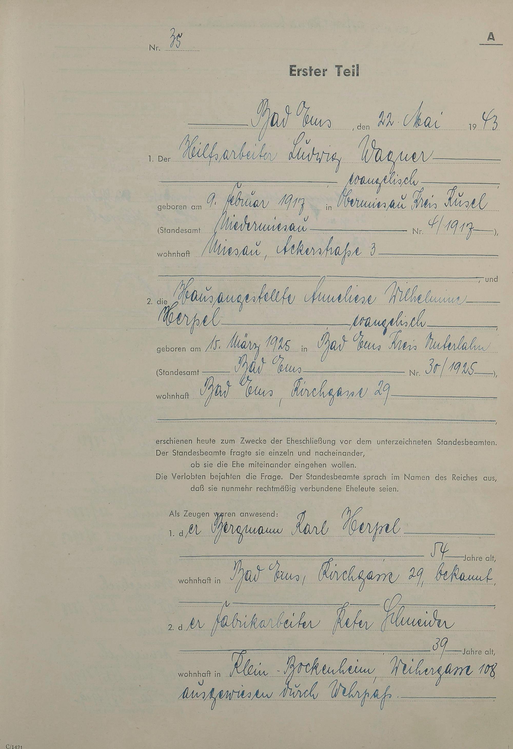 1419: Heiratsregister 1943