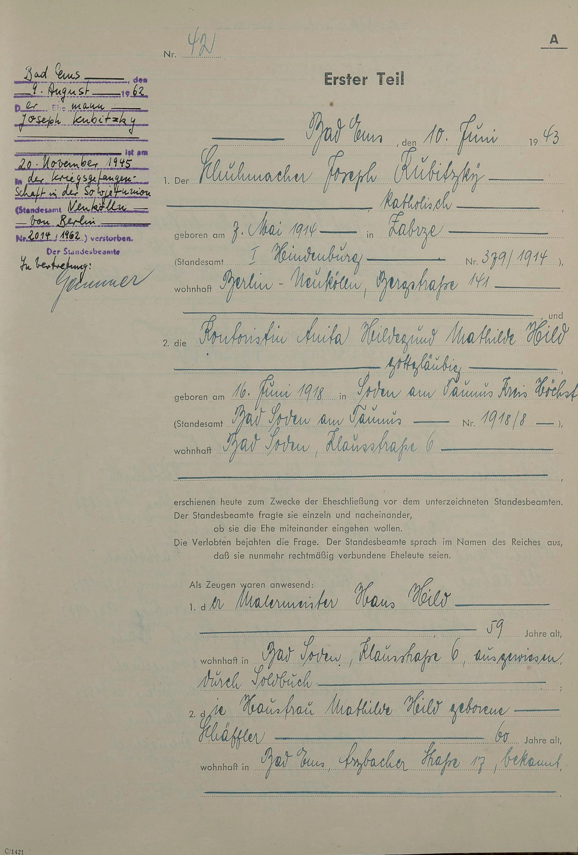 1419: Heiratsregister 1943