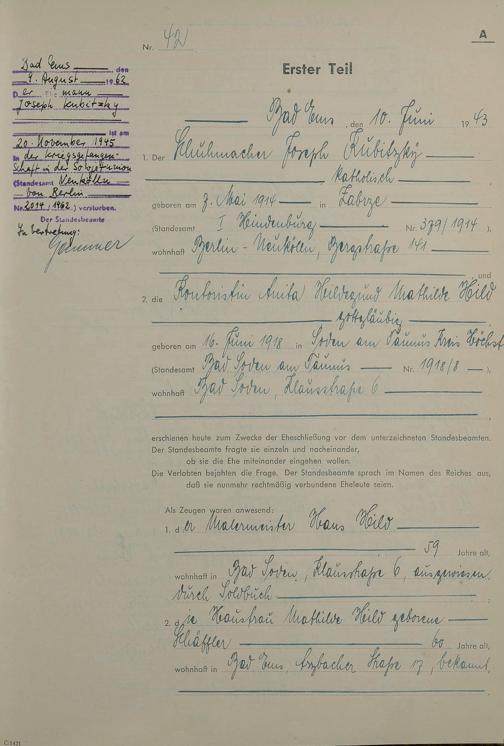 Heiratsregister 1943
