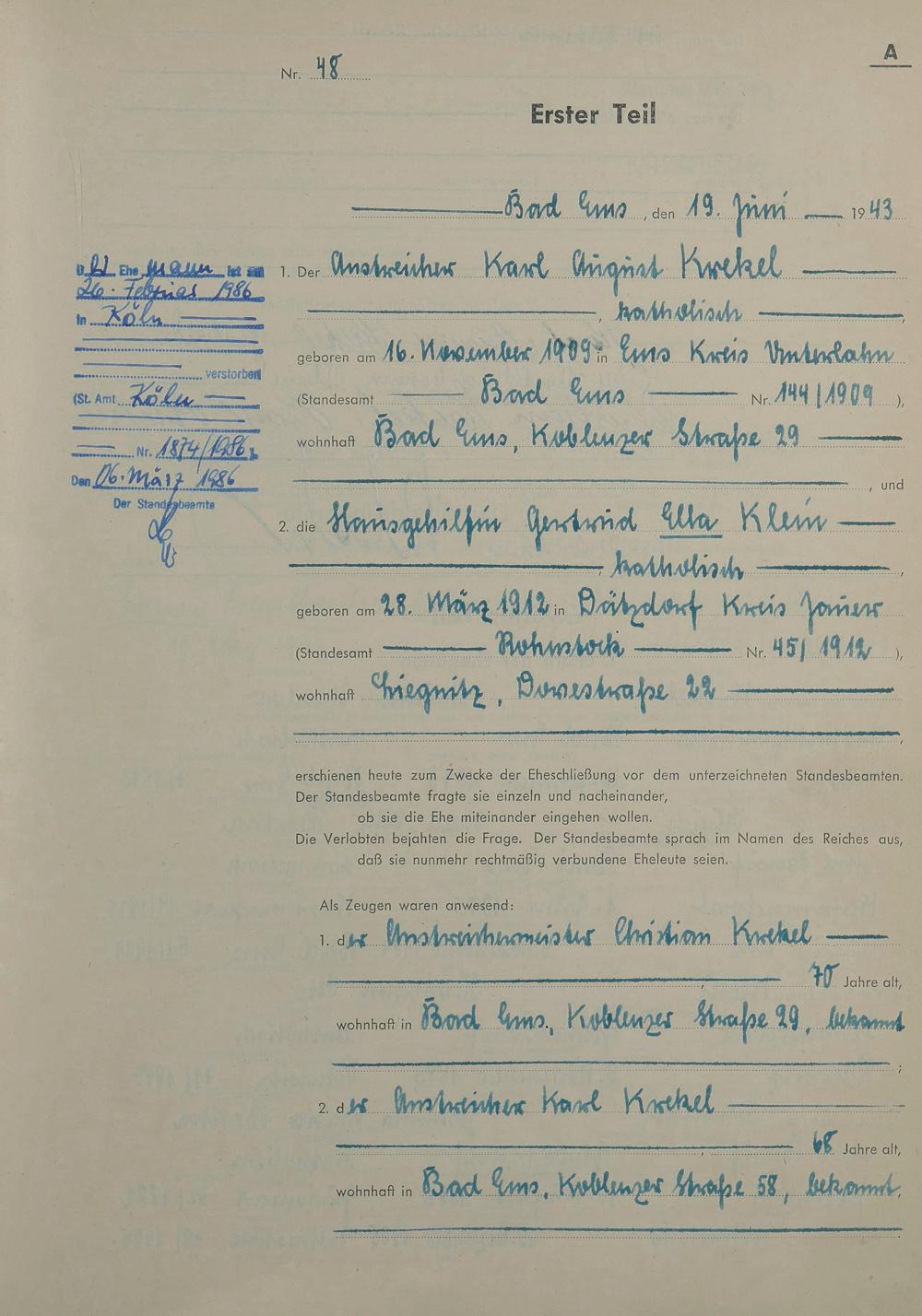 1419: Heiratsregister 1943