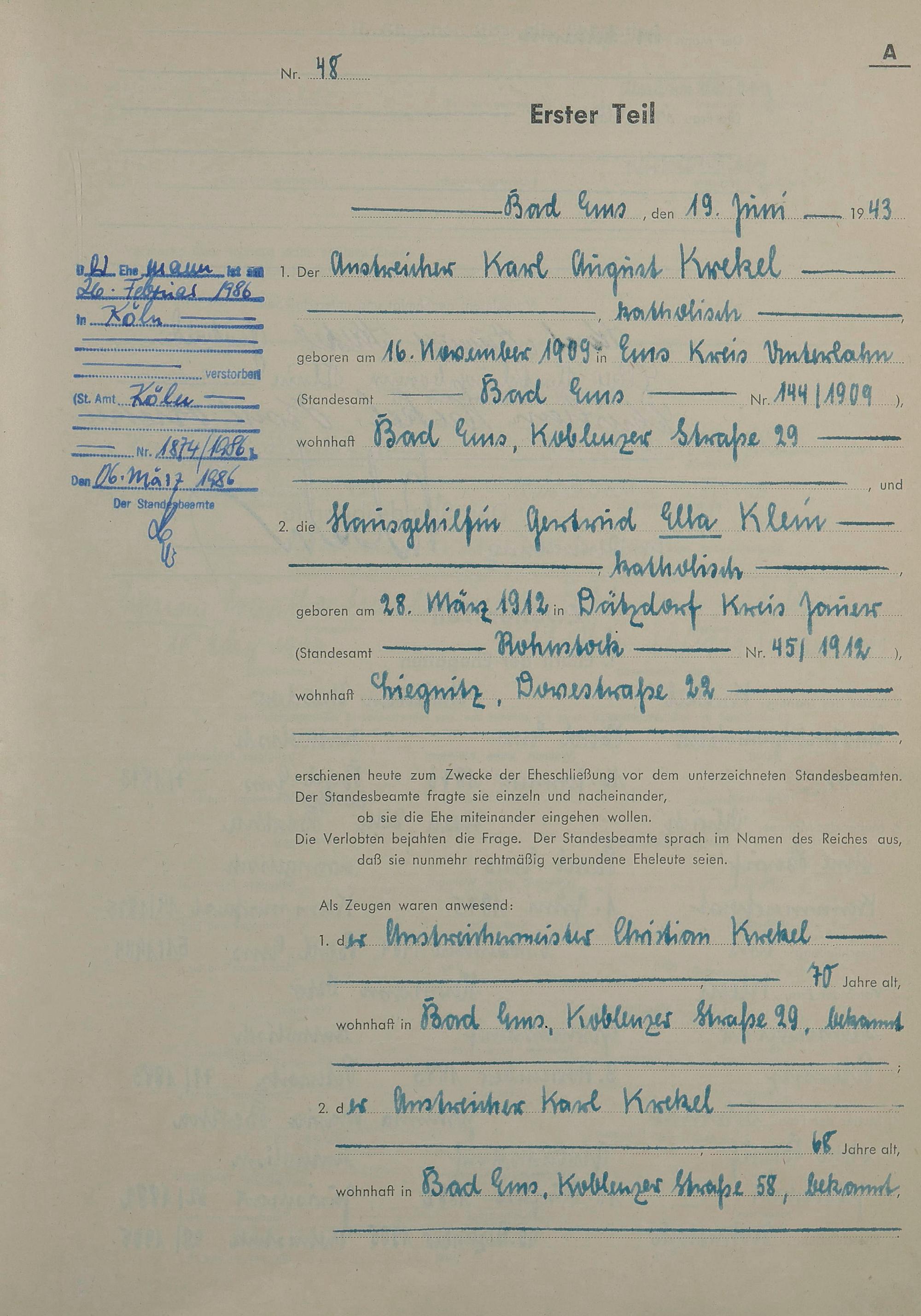 Heiratsregister 1943