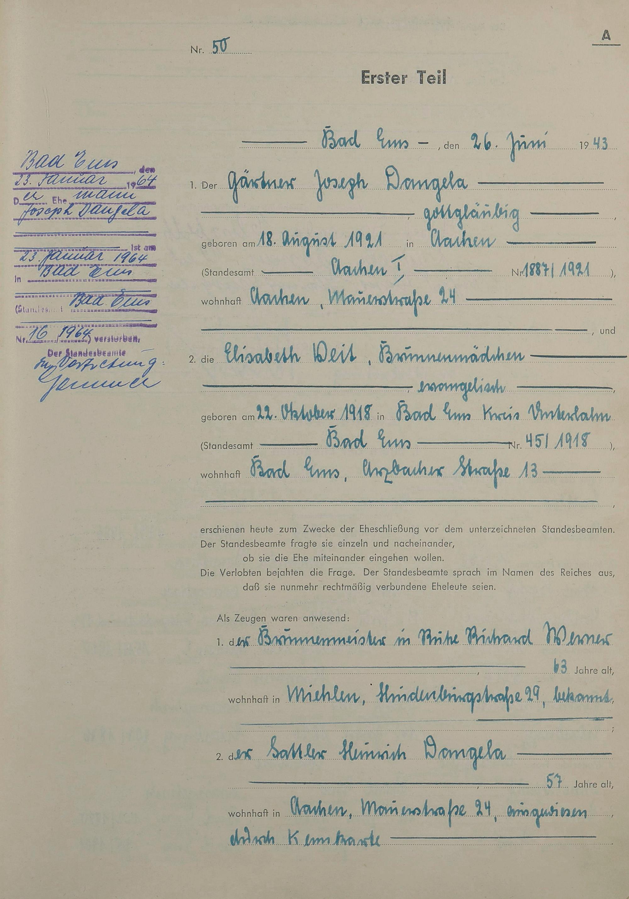 Heiratsregister 1943
