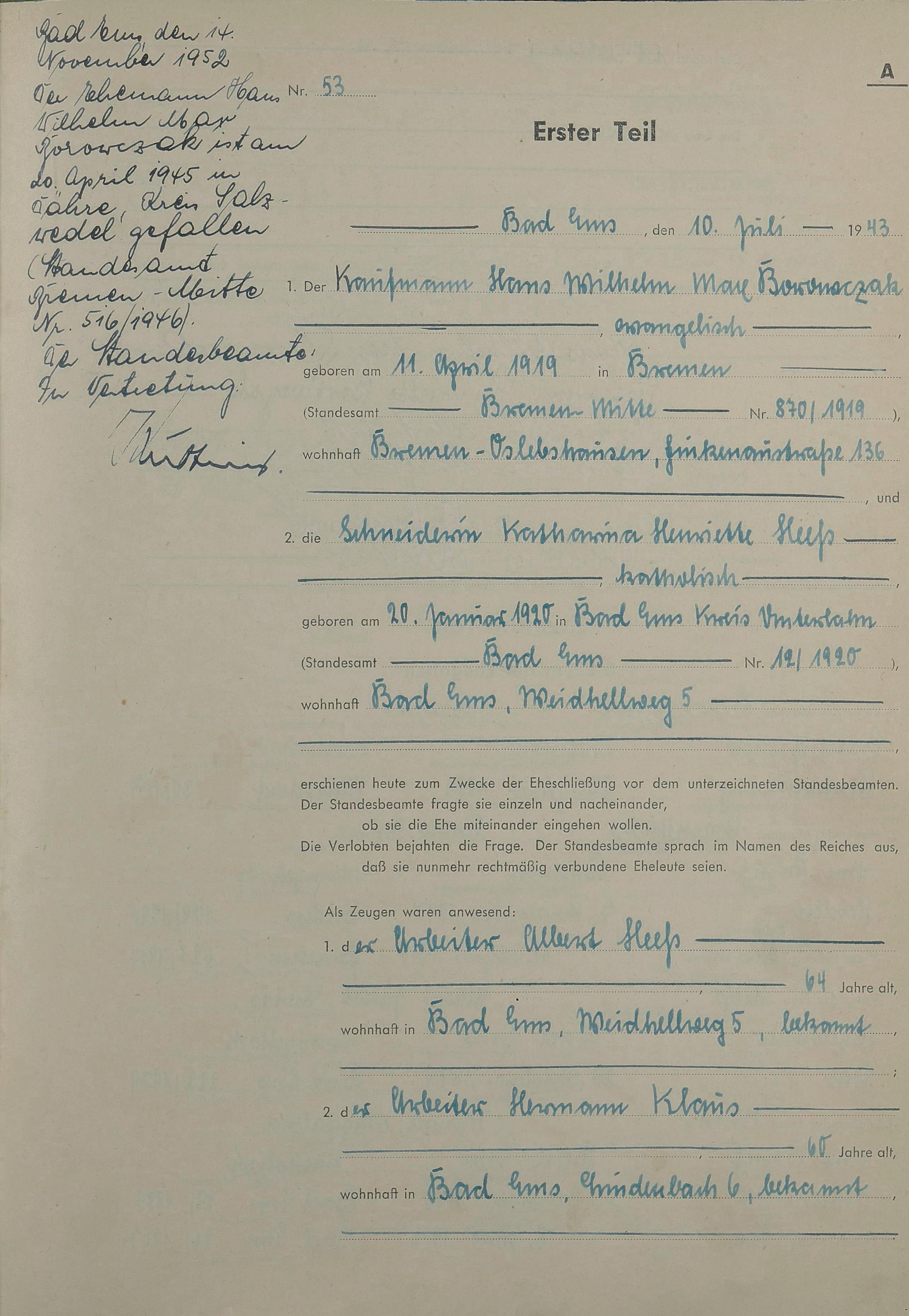 Heiratsregister 1943