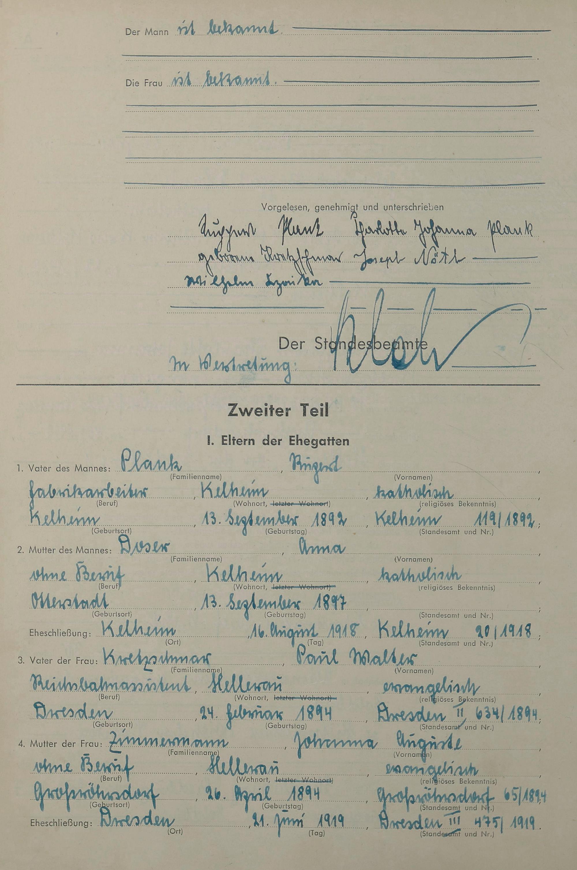 1419: Heiratsregister 1943