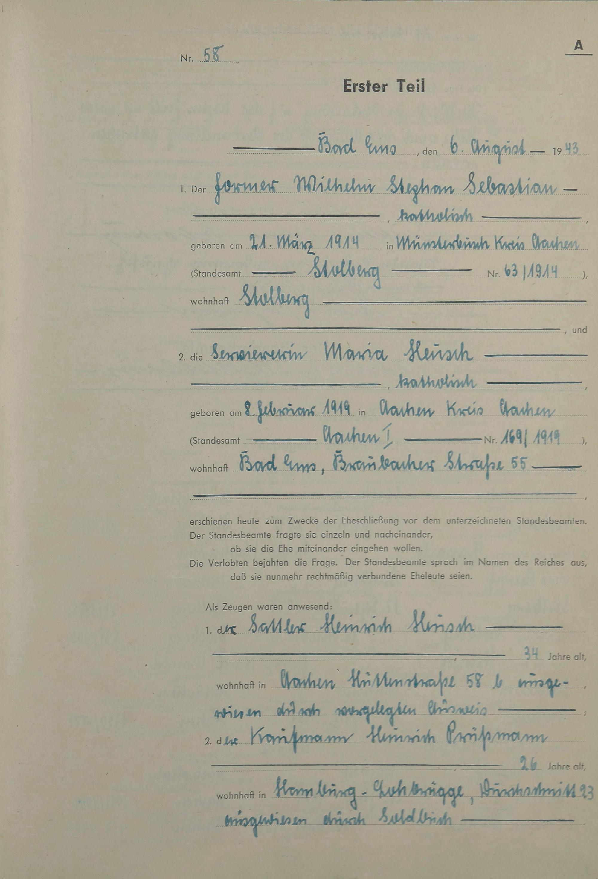 Heiratsregister 1943