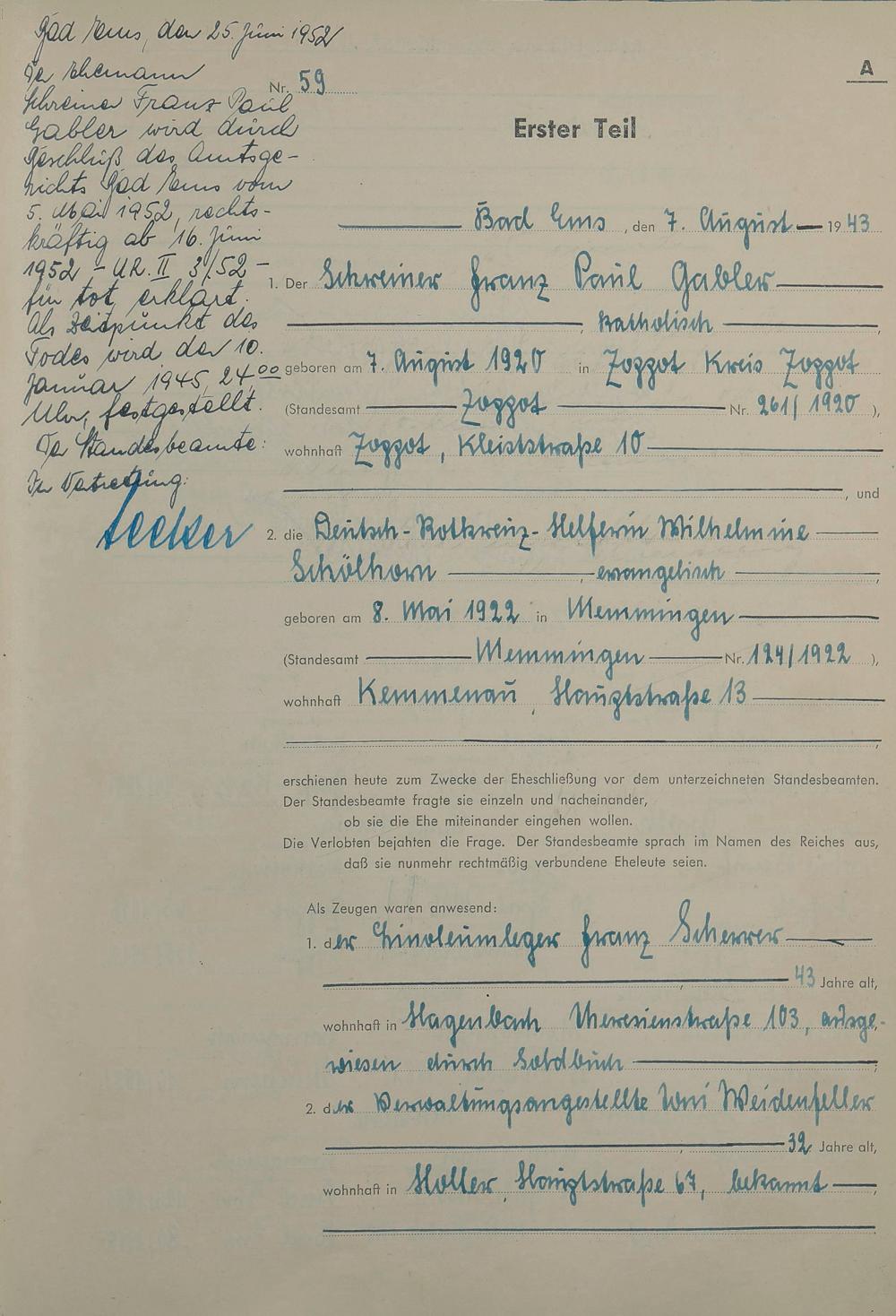 Heiratsregister 1943