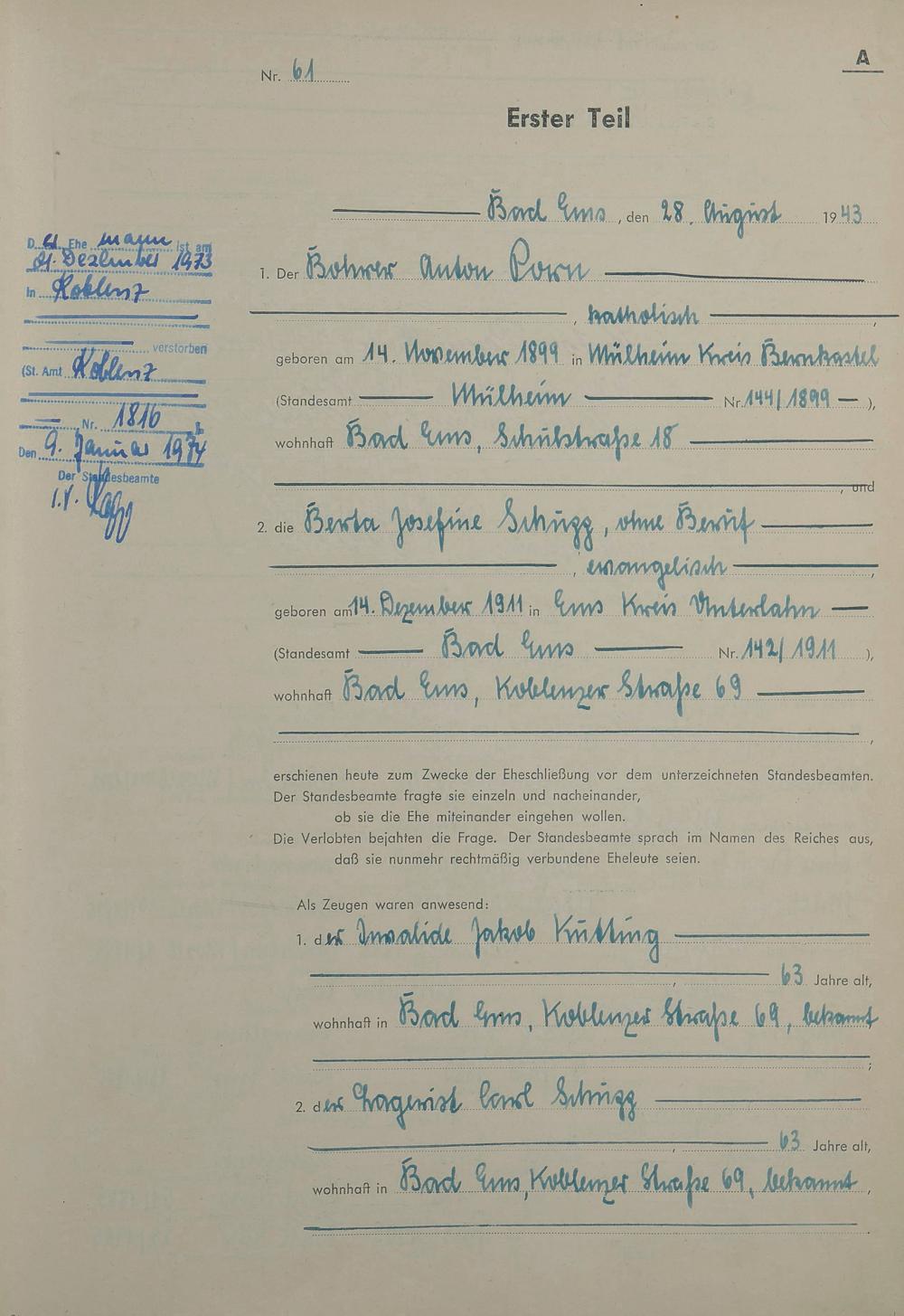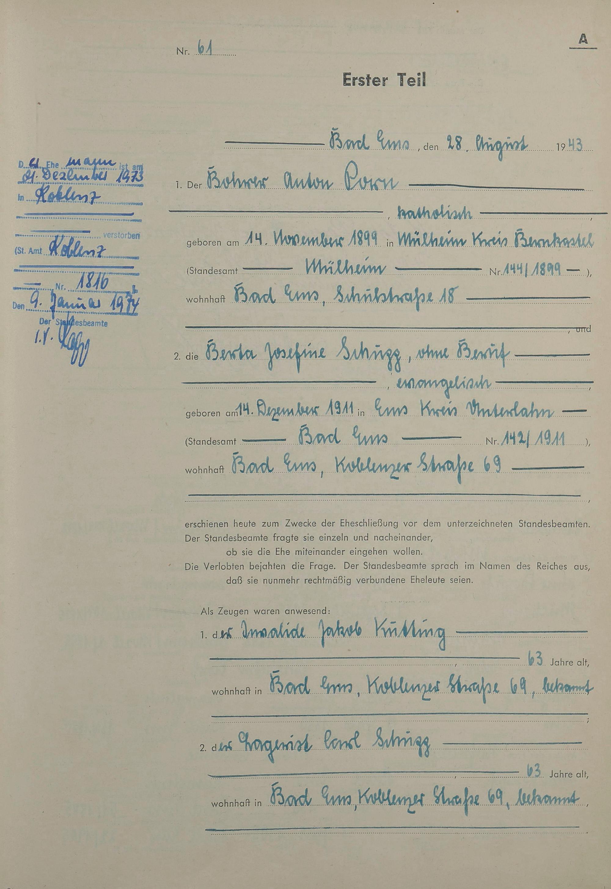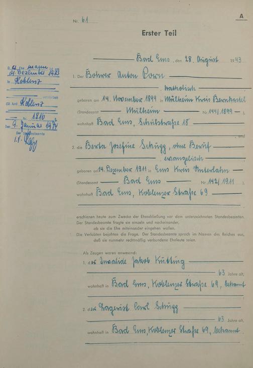 Heiratsregister 1943