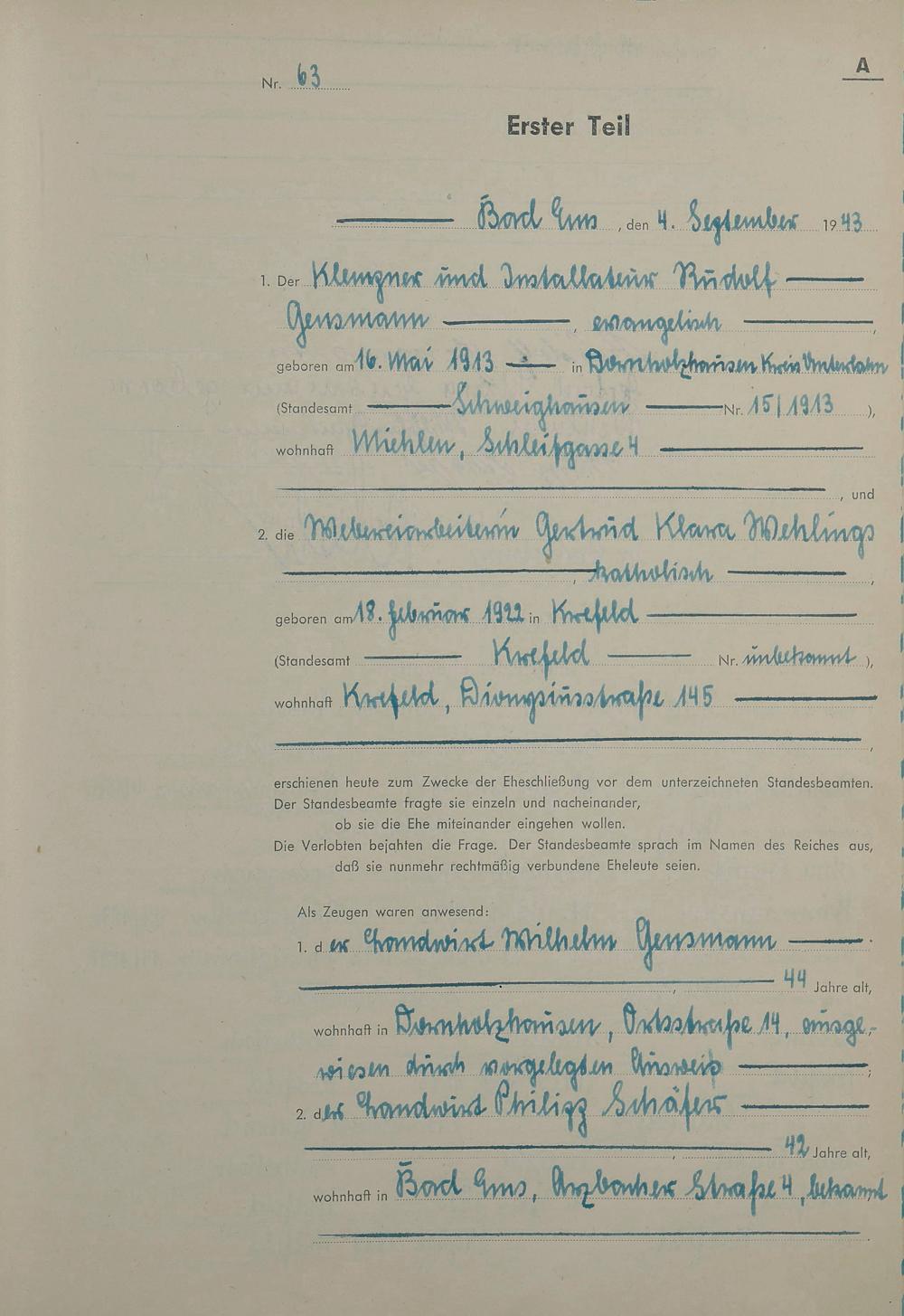 Heiratsregister 1943