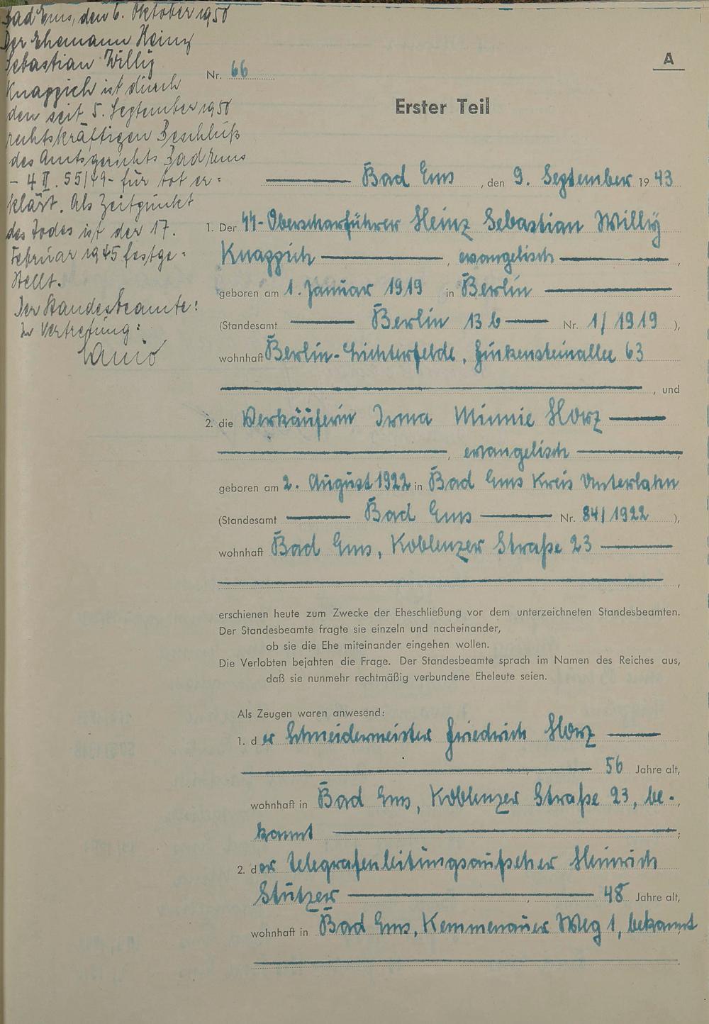 Heiratsregister 1943