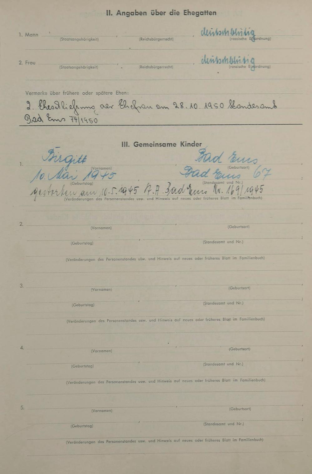 Heiratsregister 1943