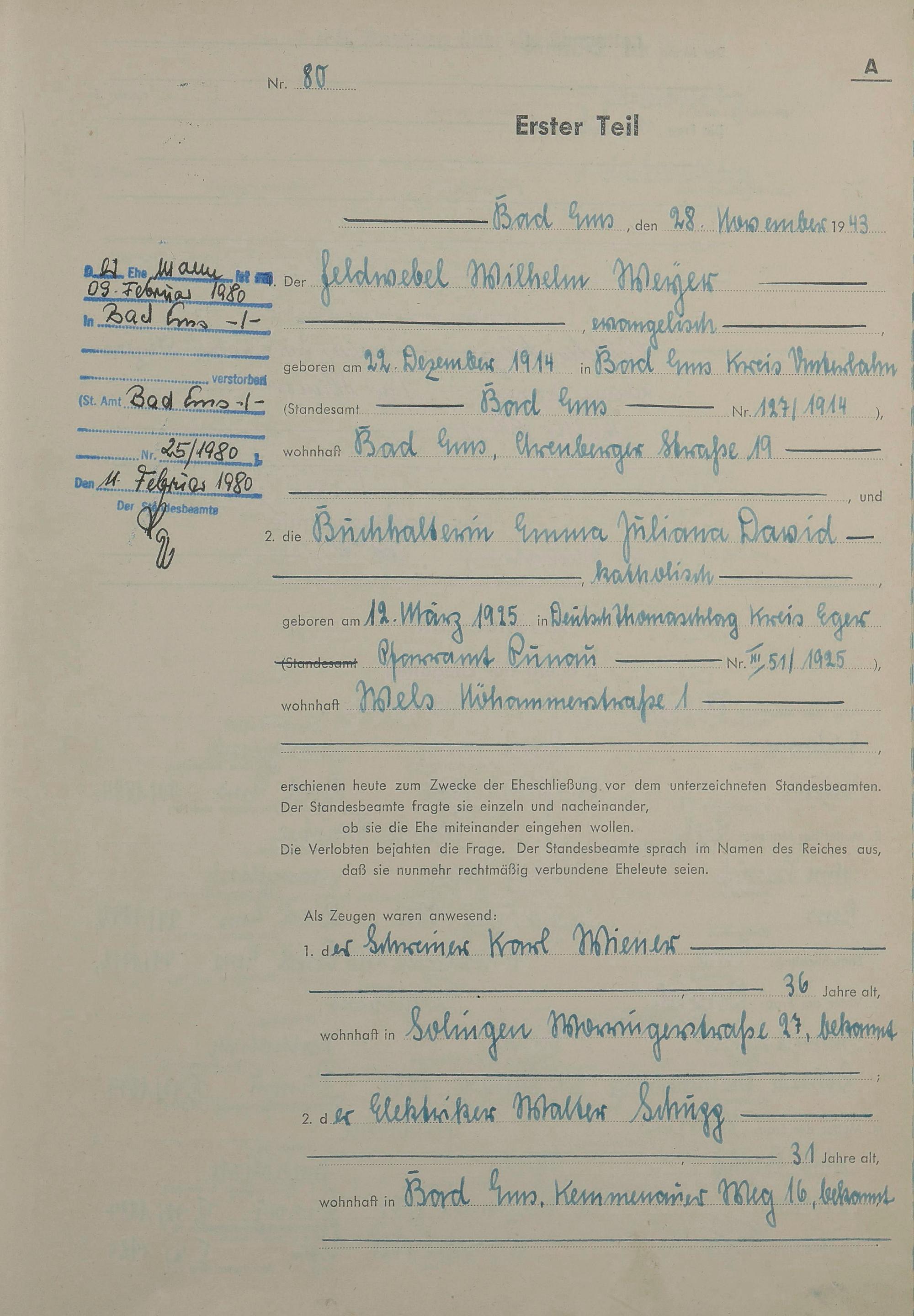 Heiratsregister 1943