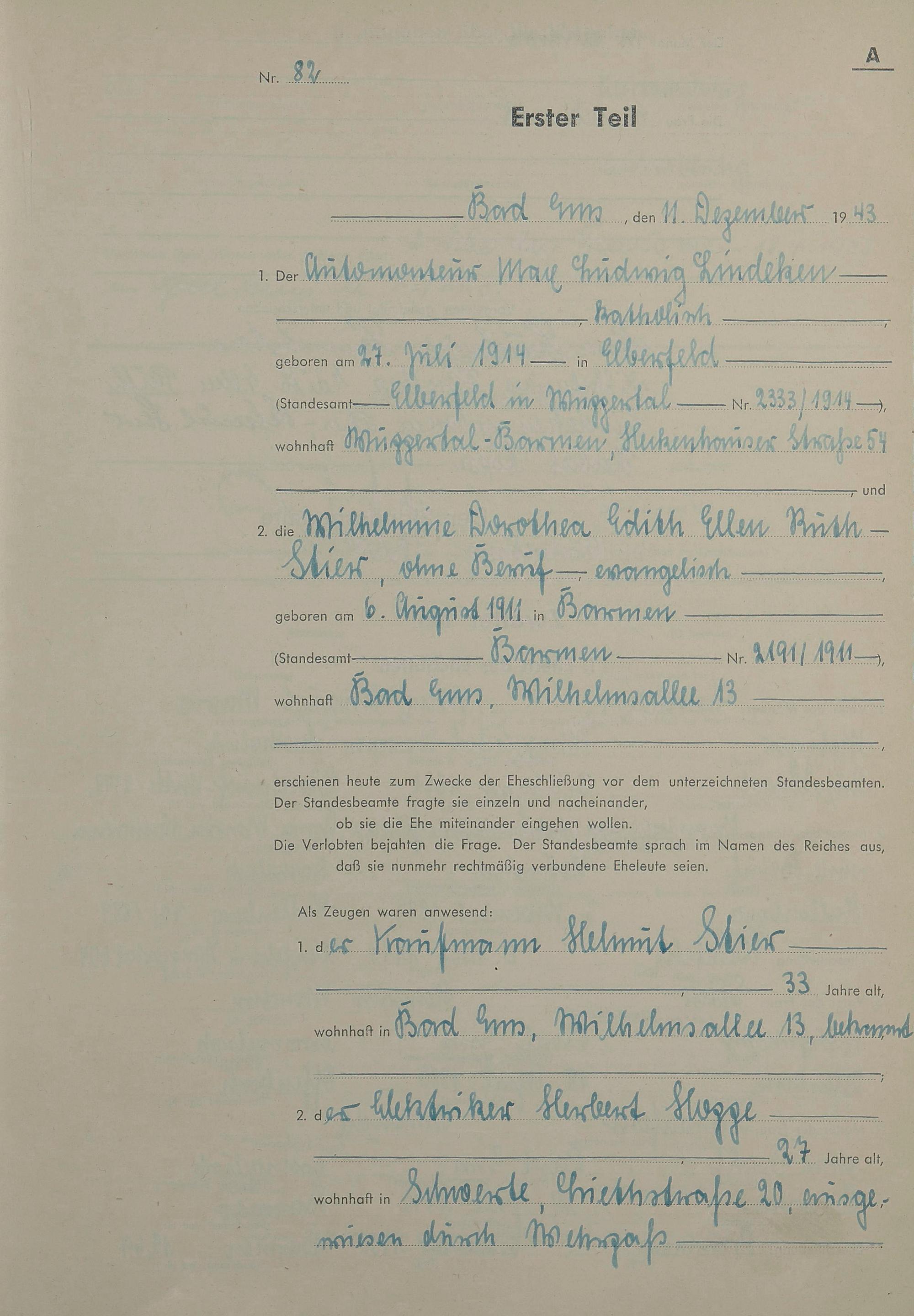 Heiratsregister 1943