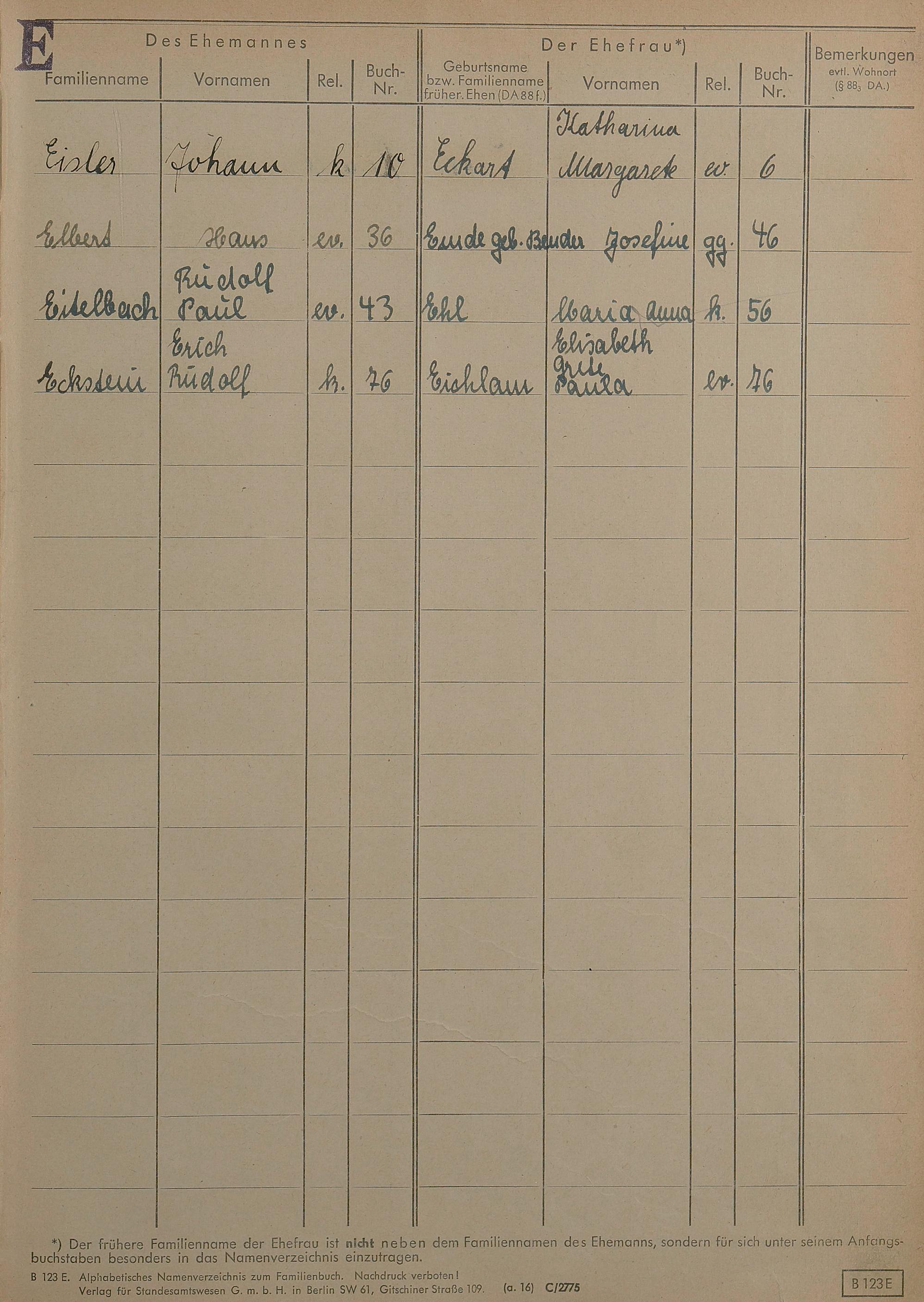 1419: Heiratsregister 1943