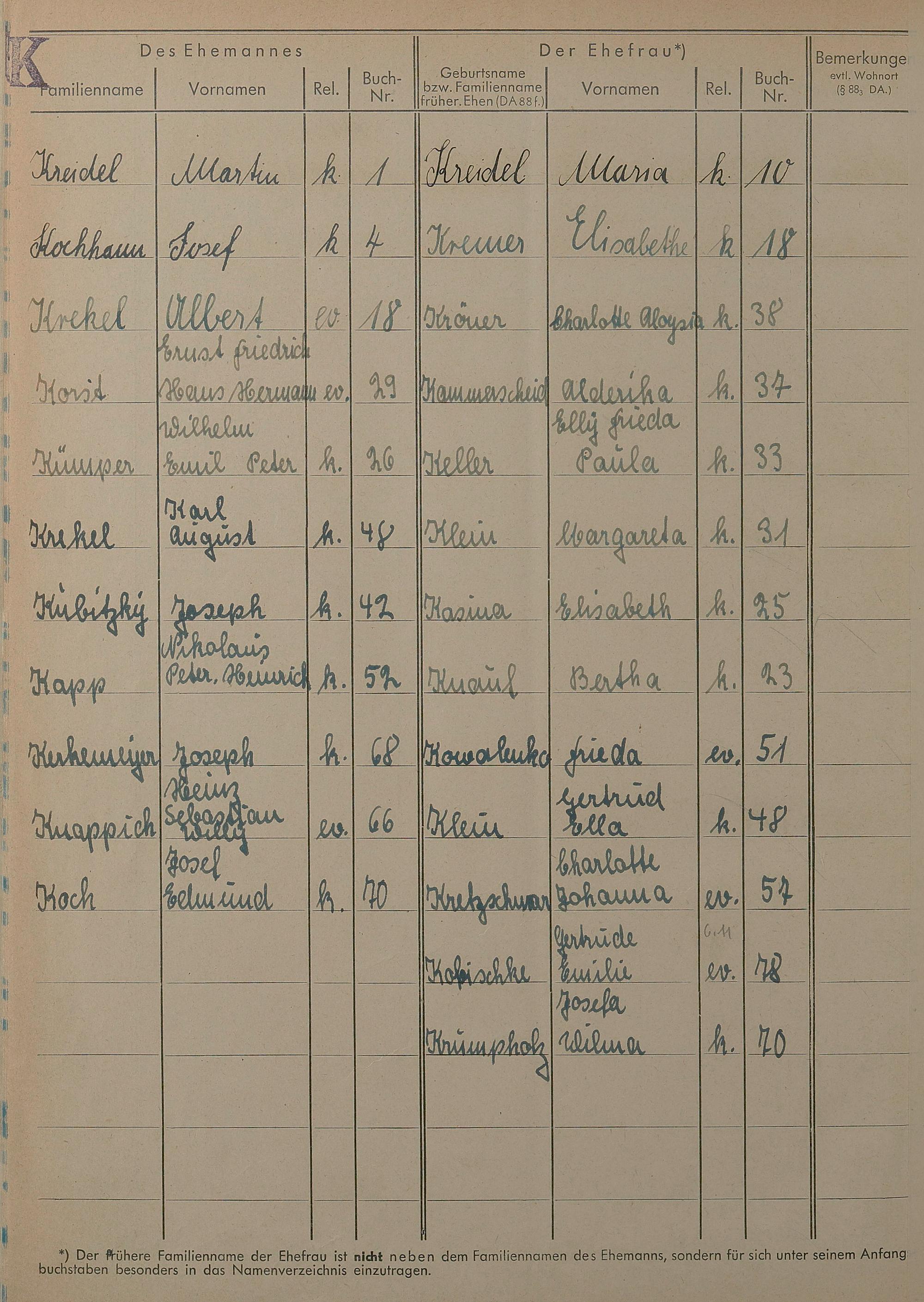 Heiratsregister 1943