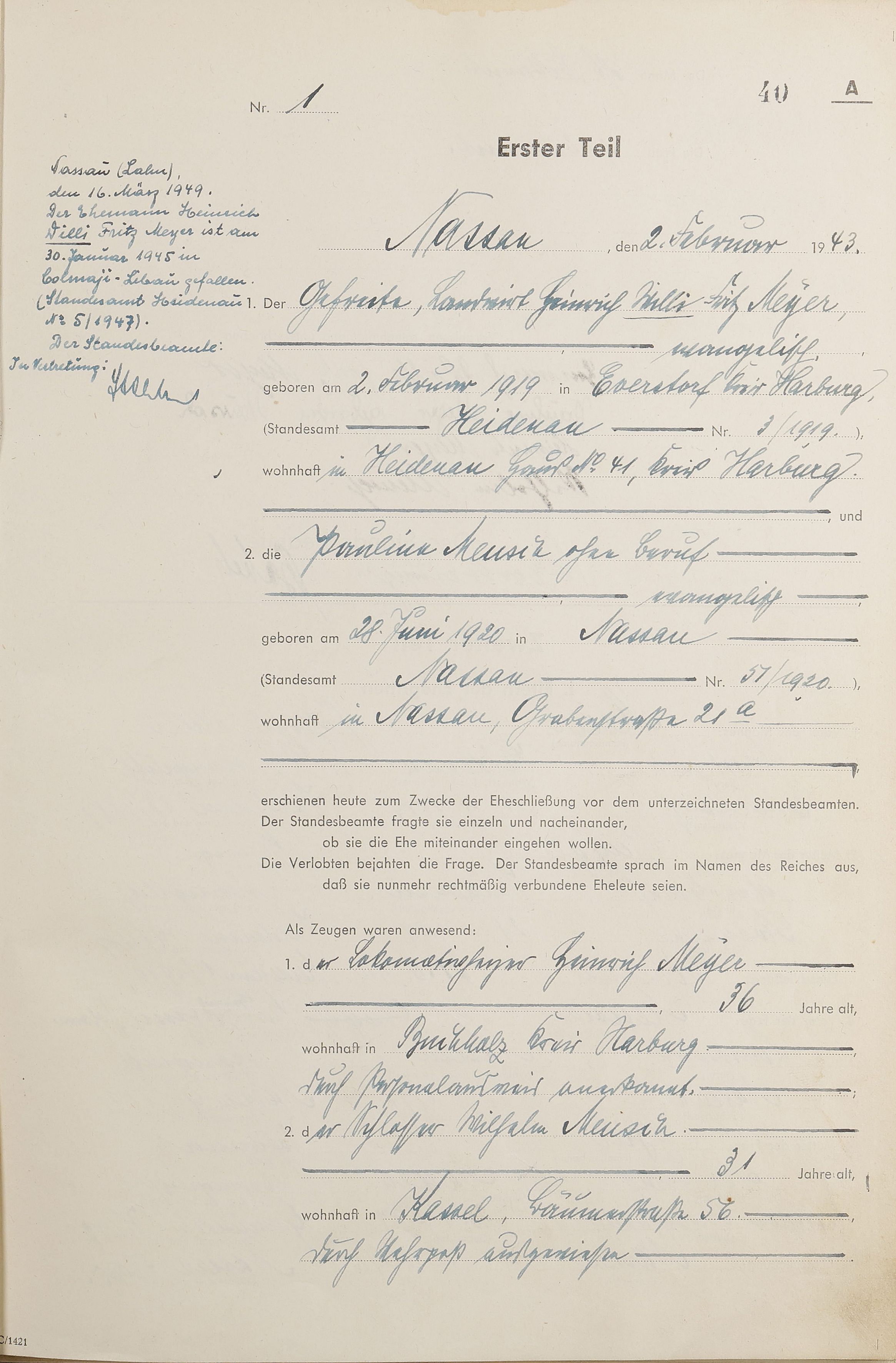 Heiratsregister 1943