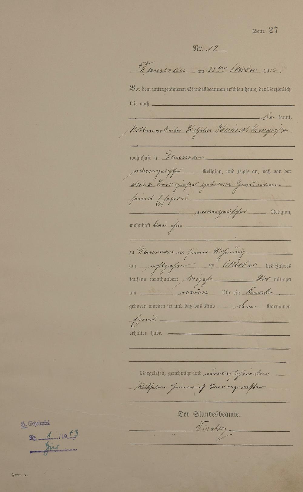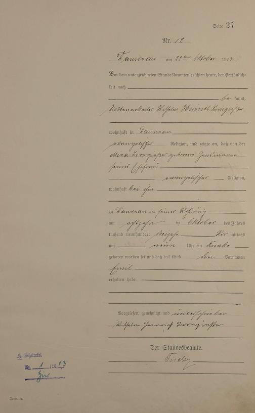 Geburtsregister 1913