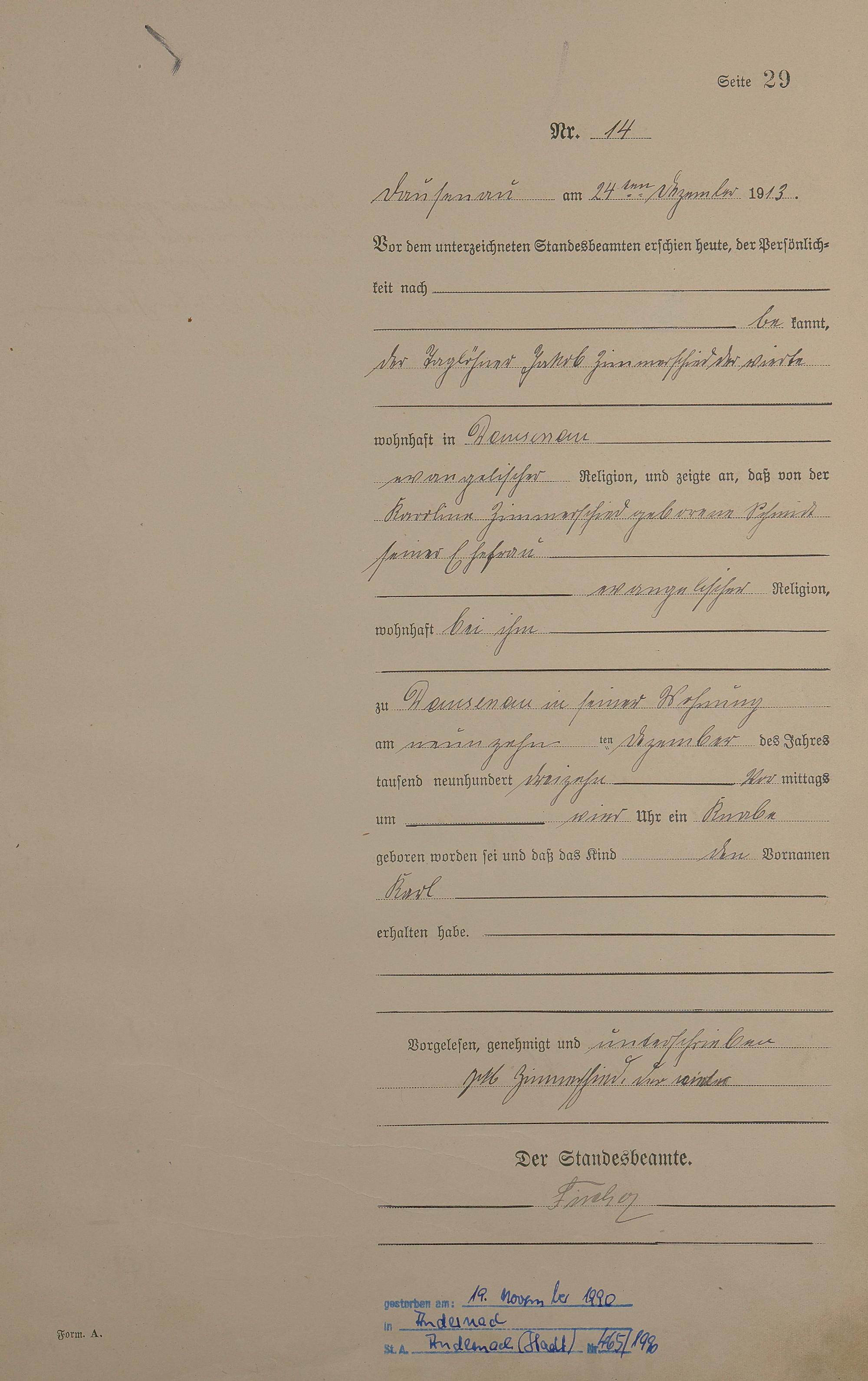 Geburtsregister 1913