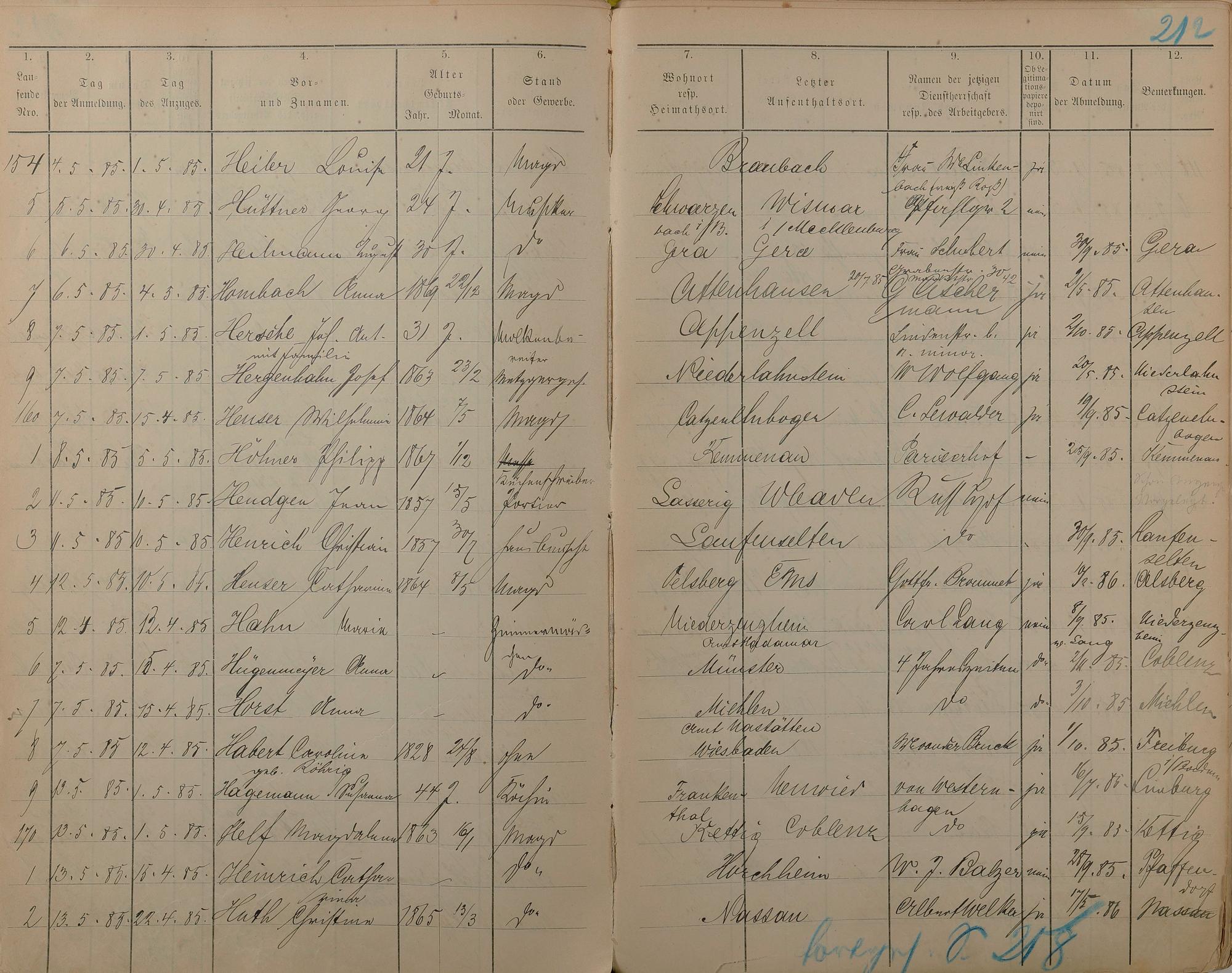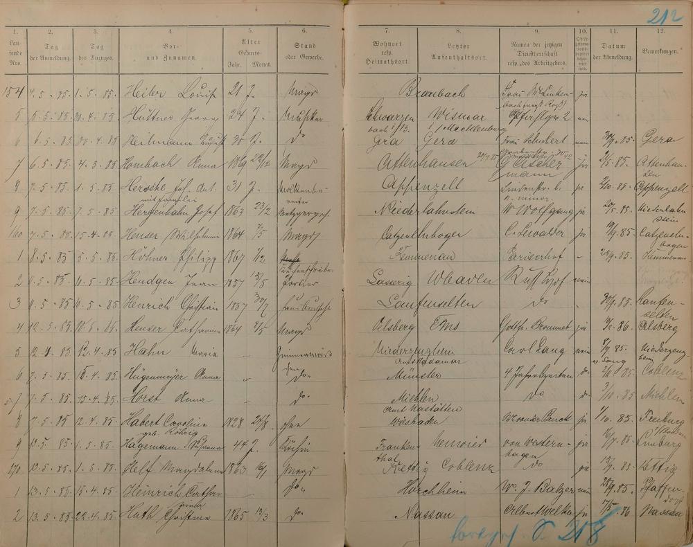 Melderegister der Gewerbegehilfen, Gesellen und Dienstboten 1884 - 1886