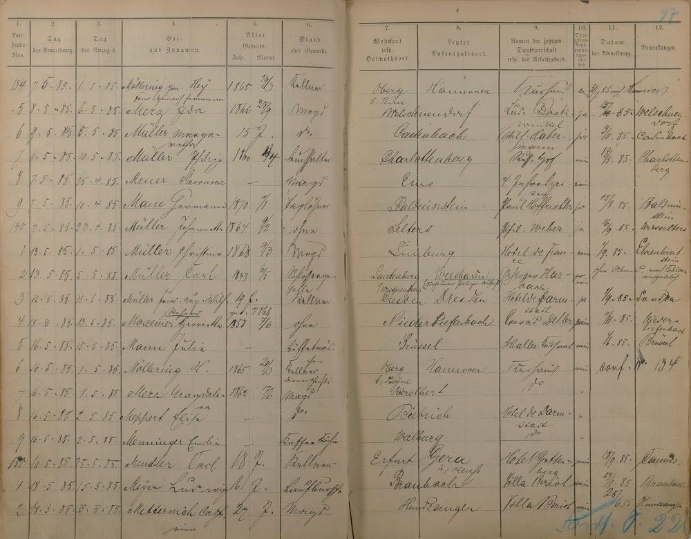 Melderegister der Gewerbegehilfen, Gesellen und Dienstboten 1884 - 1886