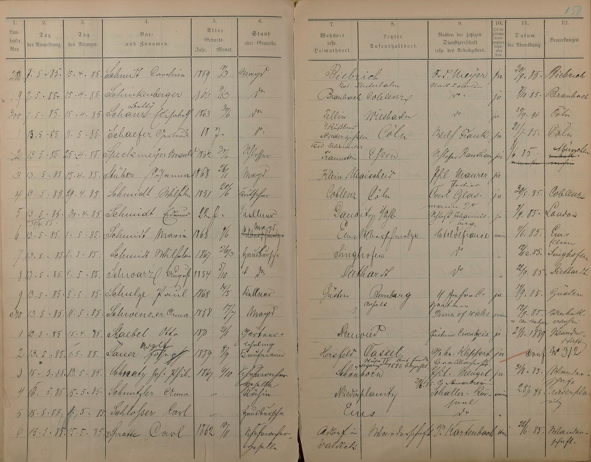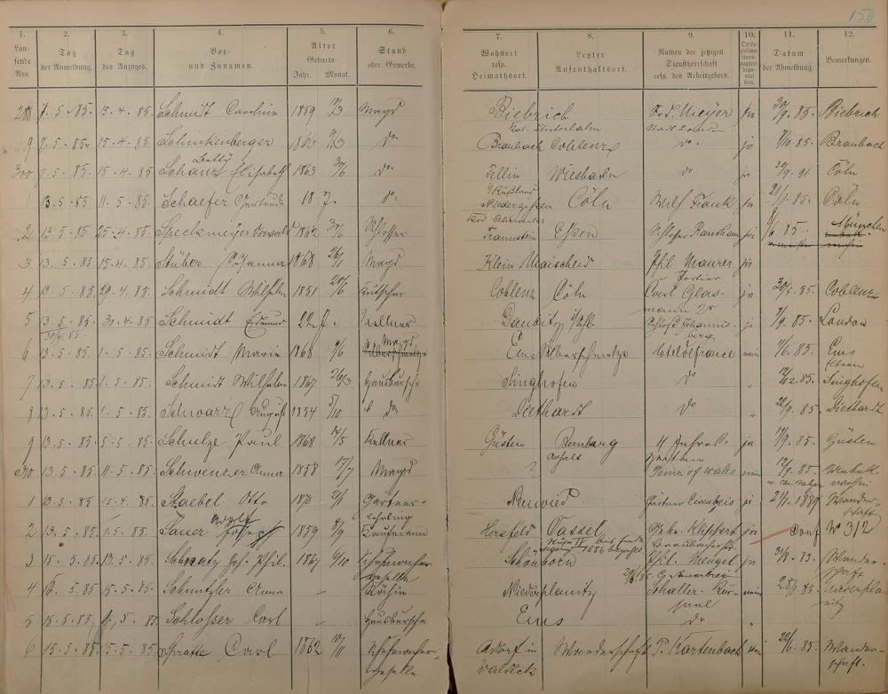 Melderegister der Gewerbegehilfen, Gesellen und Dienstboten 1884 - 1886