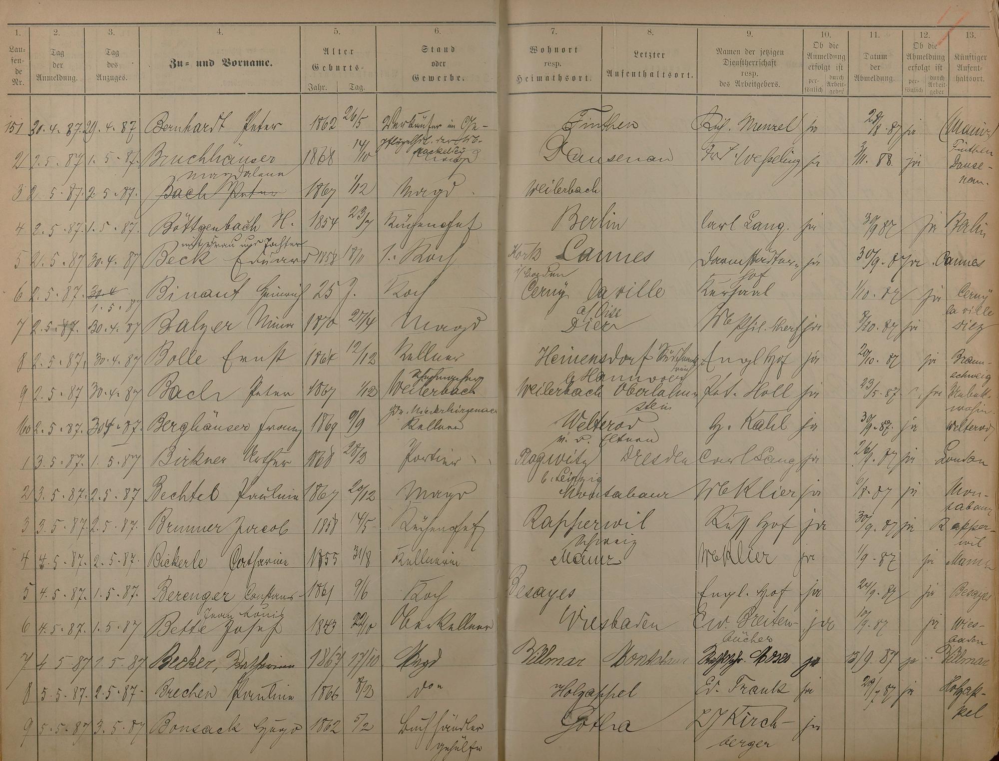Melderegister der Gewerbegehilfen, Gesellen und Dienstboten 1886 - 1889
