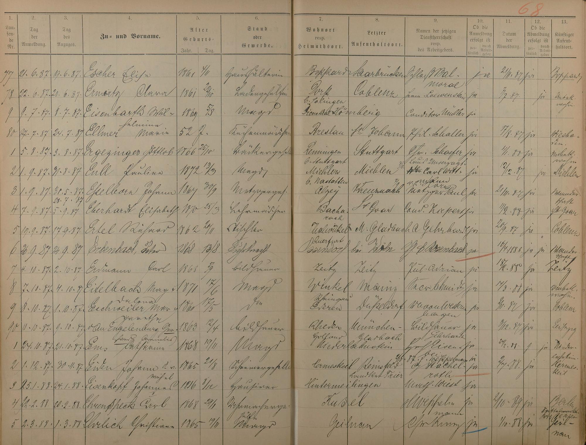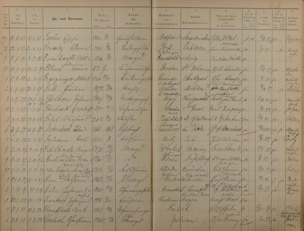 Melderegister der Gewerbegehilfen, Gesellen und Dienstboten 1886 - 1889