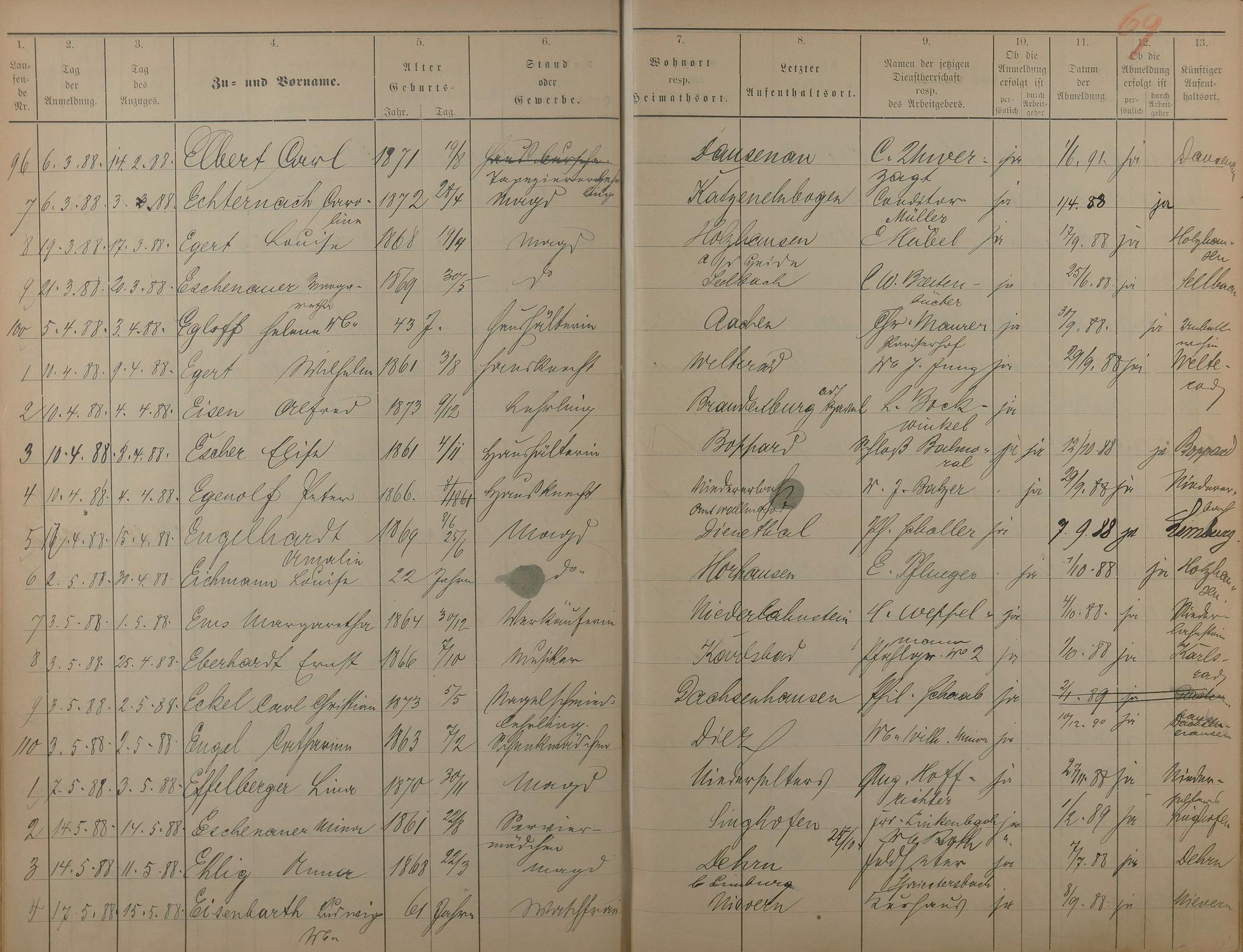 178: Melderegister der Gewerbegehilfen, Gesellen und Dienstboten 1886 - 1889
