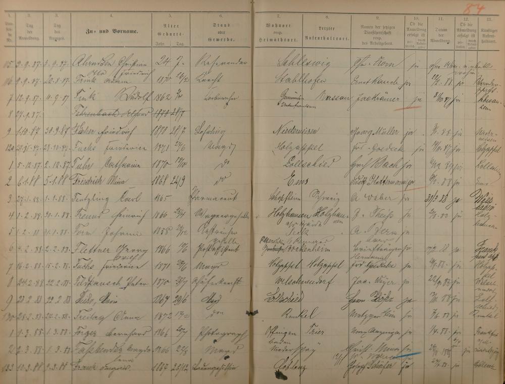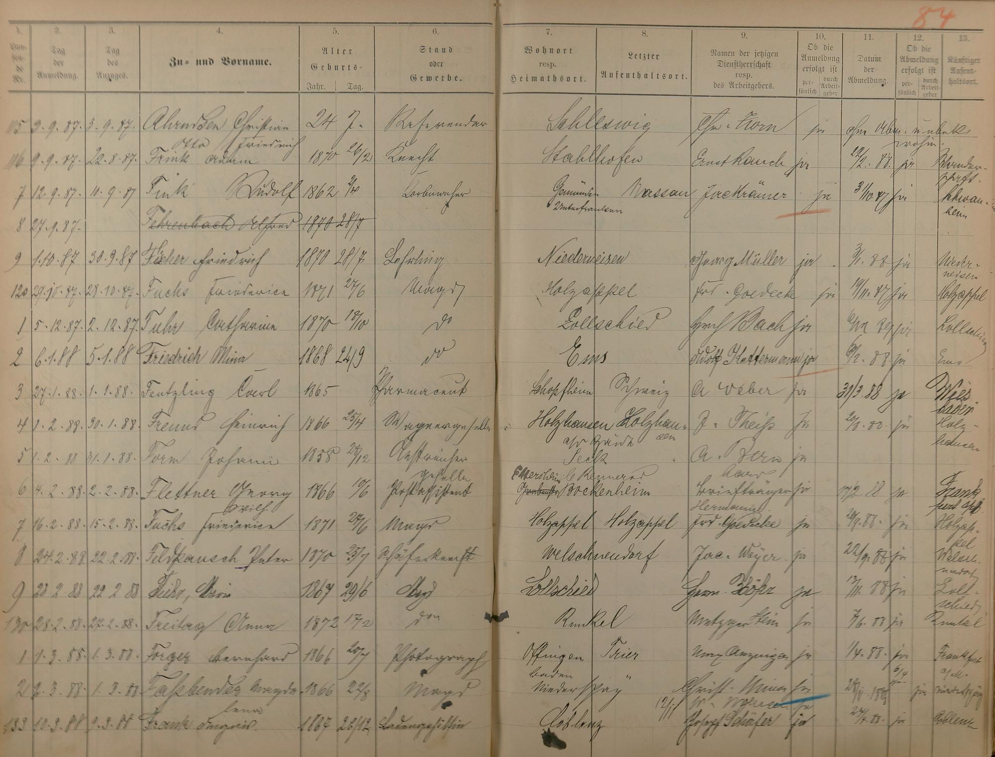 Melderegister der Gewerbegehilfen, Gesellen und Dienstboten 1886 - 1889