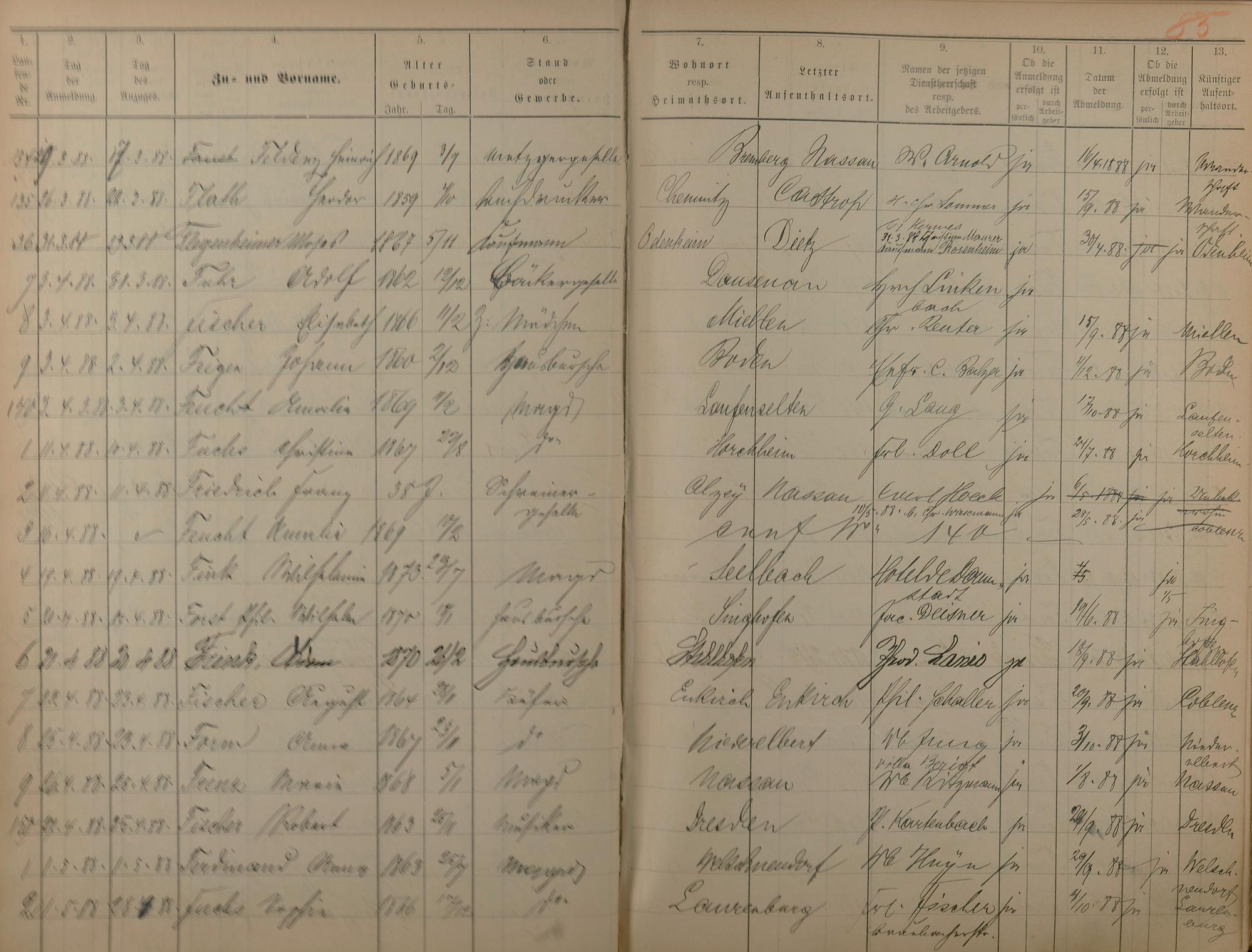Melderegister der Gewerbegehilfen, Gesellen und Dienstboten 1886 - 1889